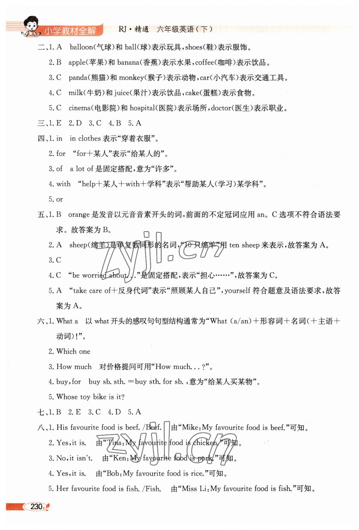 注:目前有些书本章节名称可能整理的还不是很完善,但都是按照顺序排列的,请同学们按照顺序仔细查找。练习册 2023年教材全解六年级英语下册人教精通版 答案主要是用来给同学们做完题方便对答案用的,请勿直接抄袭。