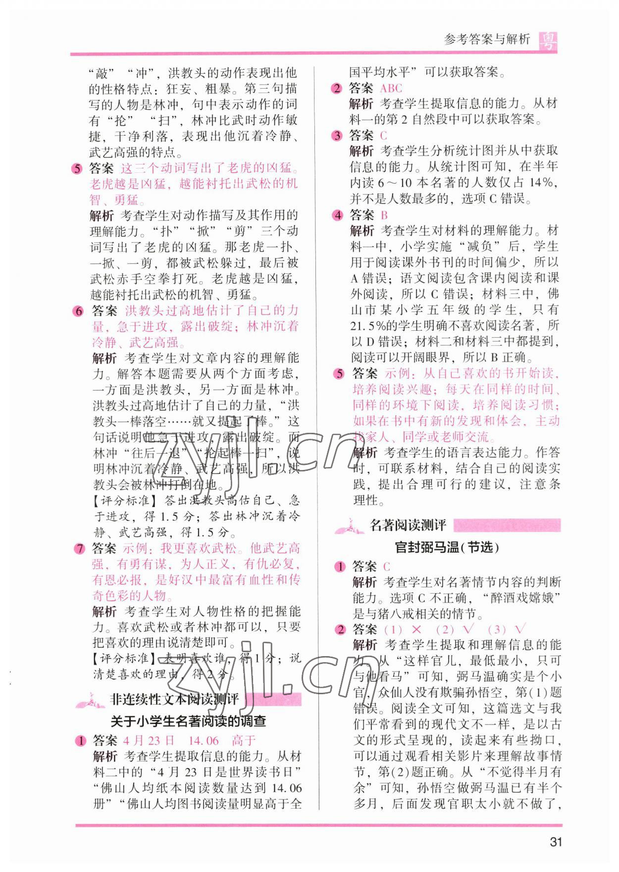 2023年木头马阅读力测评五年级语文广东专版