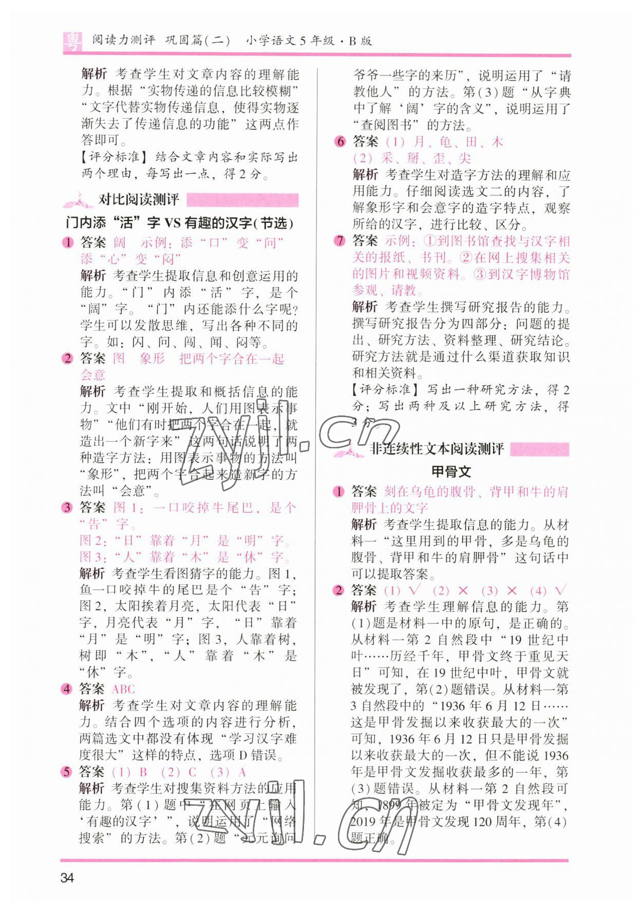 2023年木头马阅读力测评五年级语文广东专版