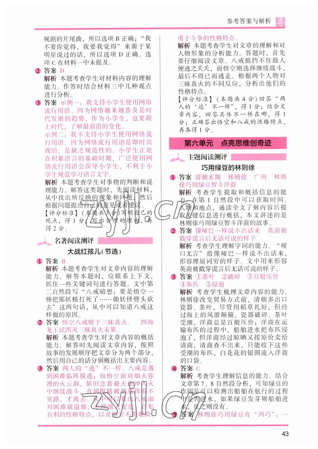 注:目前有些书本章节名称可能整理的还不是很完善,但都是按照顺序排列的,请同学们按照顺序仔细查找。练习册 2023年木头马阅读力测评五年级语文广东专版 答案主要是用来给同学们做完题方便对答案用的,请勿直接抄袭。