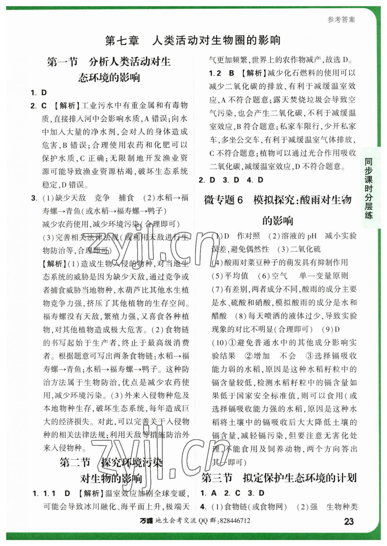 注:目前有些书本章节名称可能整理的还不是很完善,但都是按照顺序排列的,请同学们按照顺序仔细查找。练习册 2023年万唯中考基础题七年级生物下册人教版 答案主要是用来给同学们做完题方便对答案用的,请勿直接抄袭。