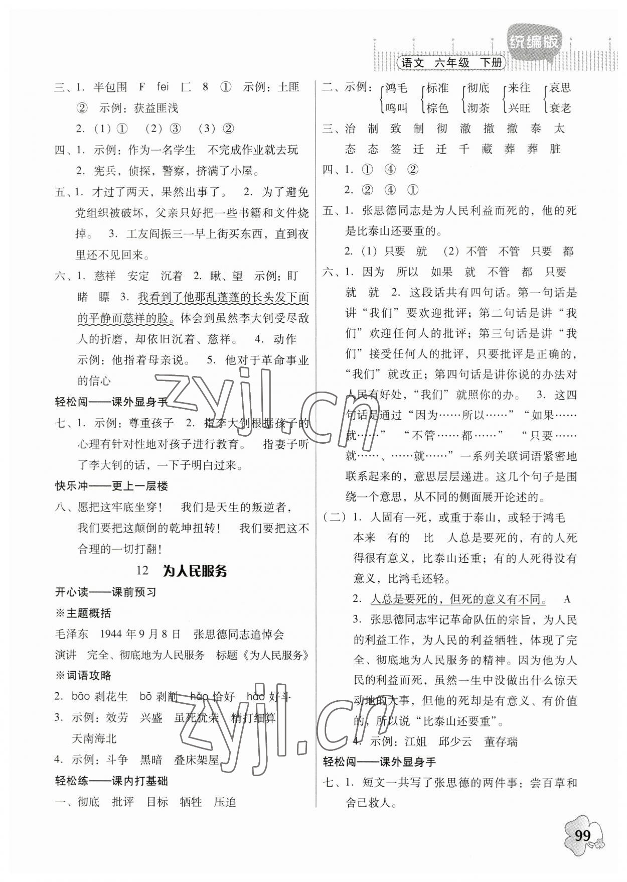 注:目前有些书本章节名称可能整理的还不是很完善,但都是按照顺序排列的,请同学们按照顺序仔细查找。练习册 2023年快乐课堂六年级语文下册人教版 答案主要是用来给同学们做完题方便对答案用的,请勿直接抄袭。