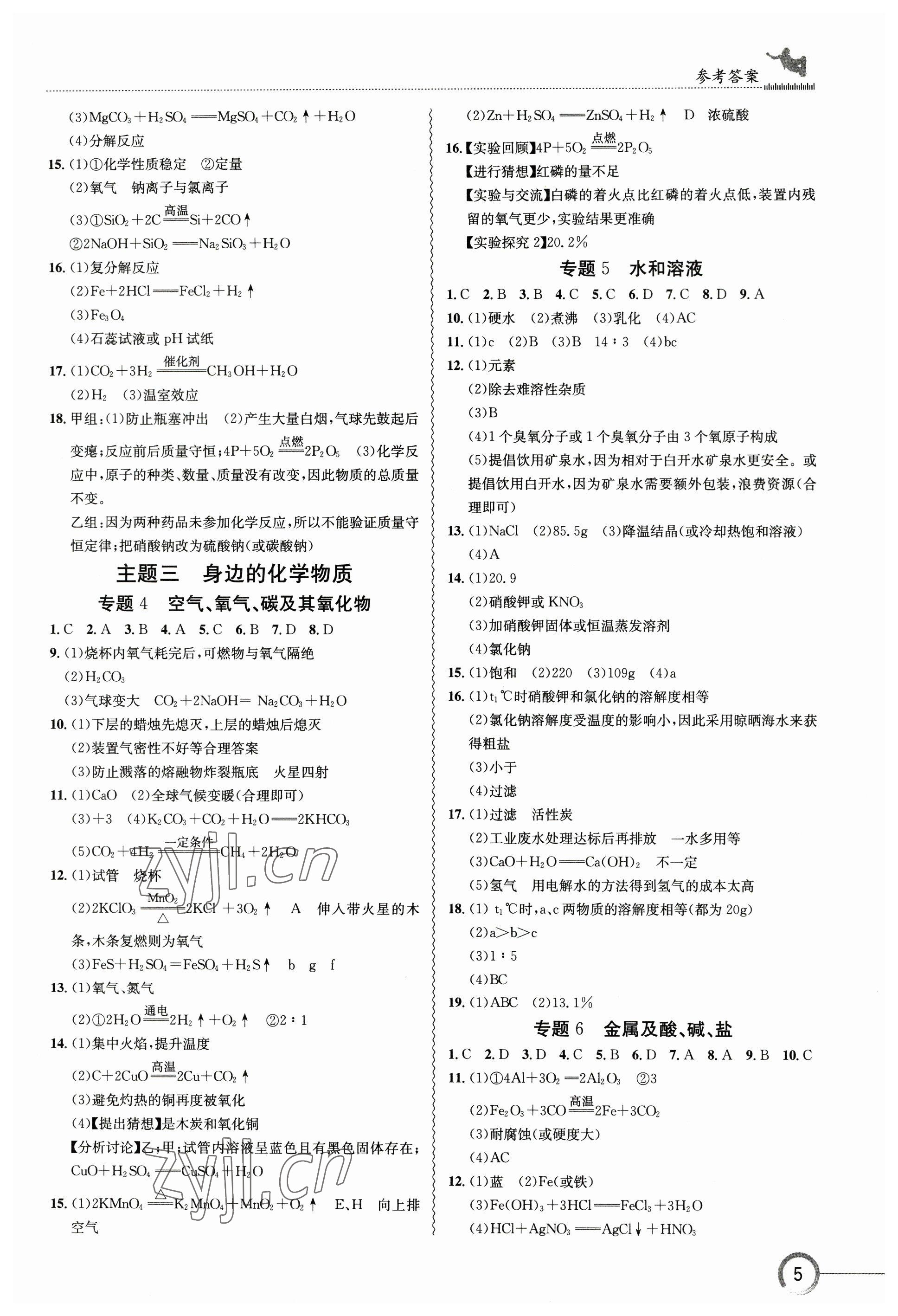 2023年中考复习指南长江少年儿童出版社化学十堰专版