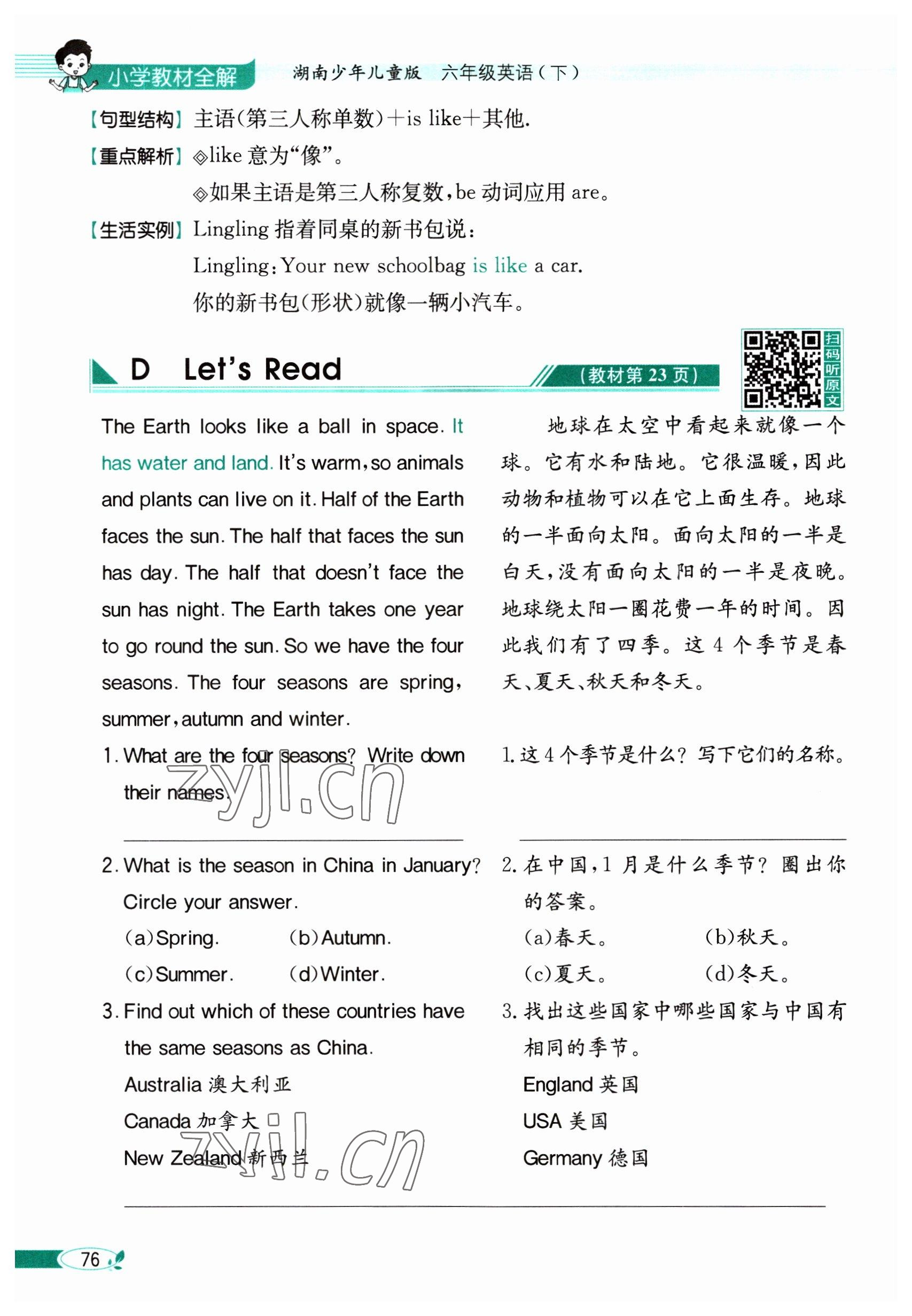 注:目前有些书本章节名称可能整理的还不是很完善,但都是按照顺序排列的,请同学们按照顺序仔细查找。练习册 2023年教材课本六年级英语下册湘少版 答案主要是用来给同学们做完题方便对答案用的,请勿直接抄袭。