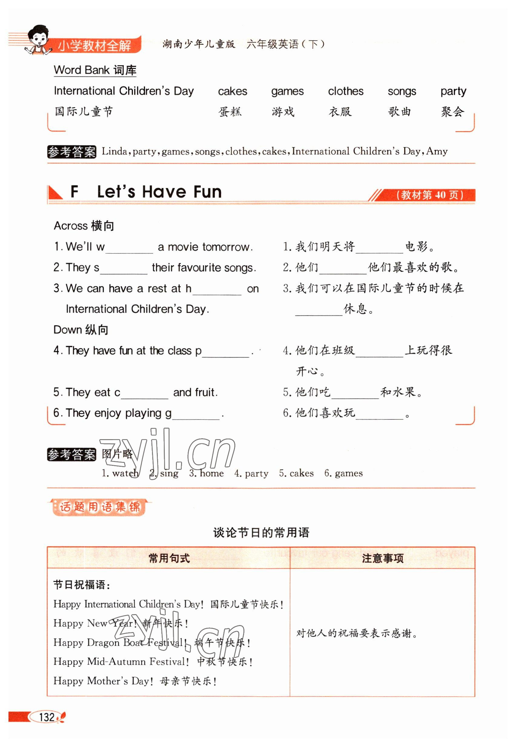 注:目前有些书本章节名称可能整理的还不是很完善,但都是按照顺序排列的,请同学们按照顺序仔细查找。练习册 2023年教材课本六年级英语下册湘少版 答案主要是用来给同学们做完题方便对答案用的,请勿直接抄袭。