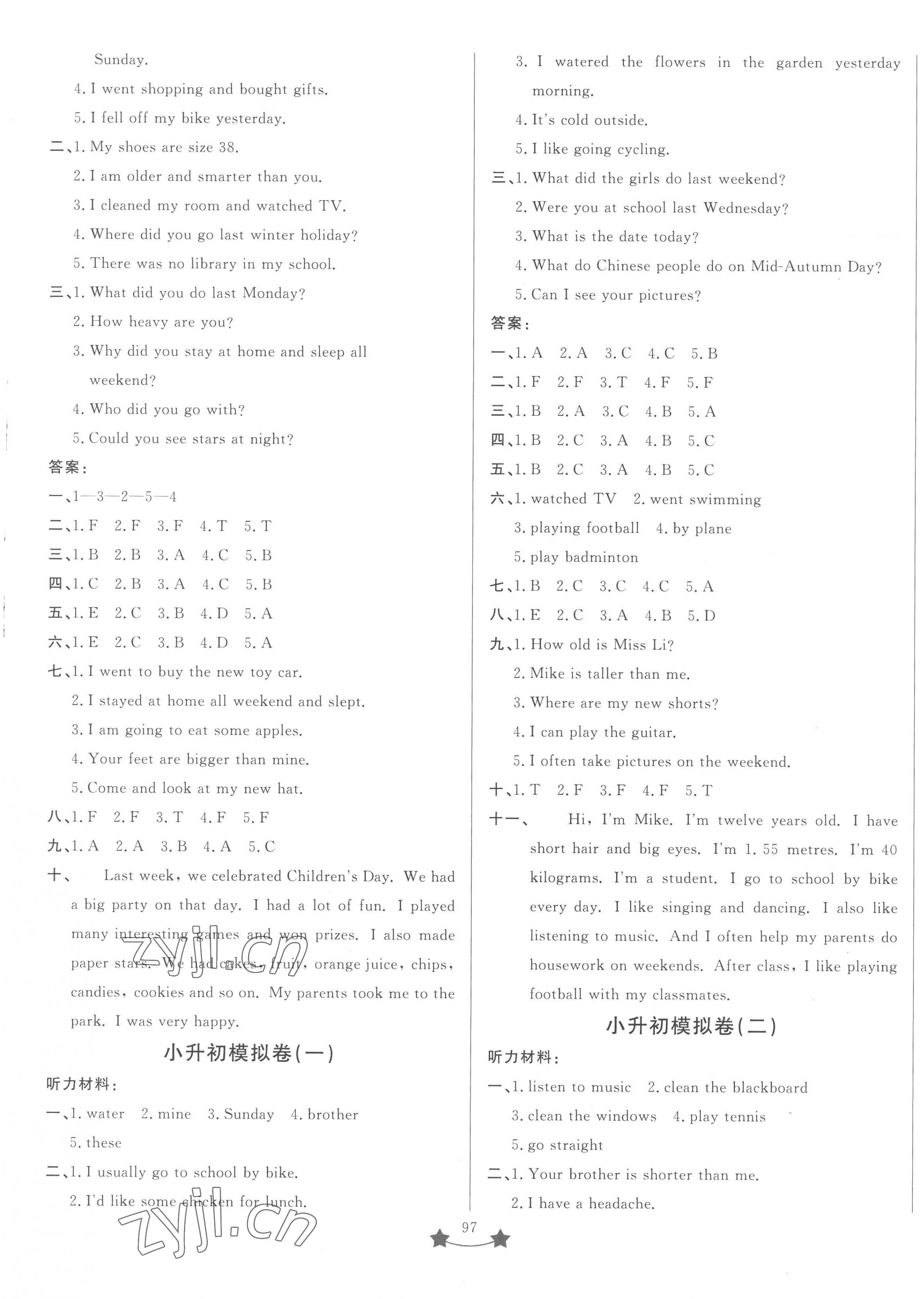 注:目前有些书本章节名称可能整理的还不是很完善,但都是按照顺序排列的,请同学们按照顺序仔细查找。练习册 2023年单元测试卷山东文艺出版社六年级英语下册人教版 答案主要是用来给同学们做完题方便对答案用的,请勿直接抄袭。