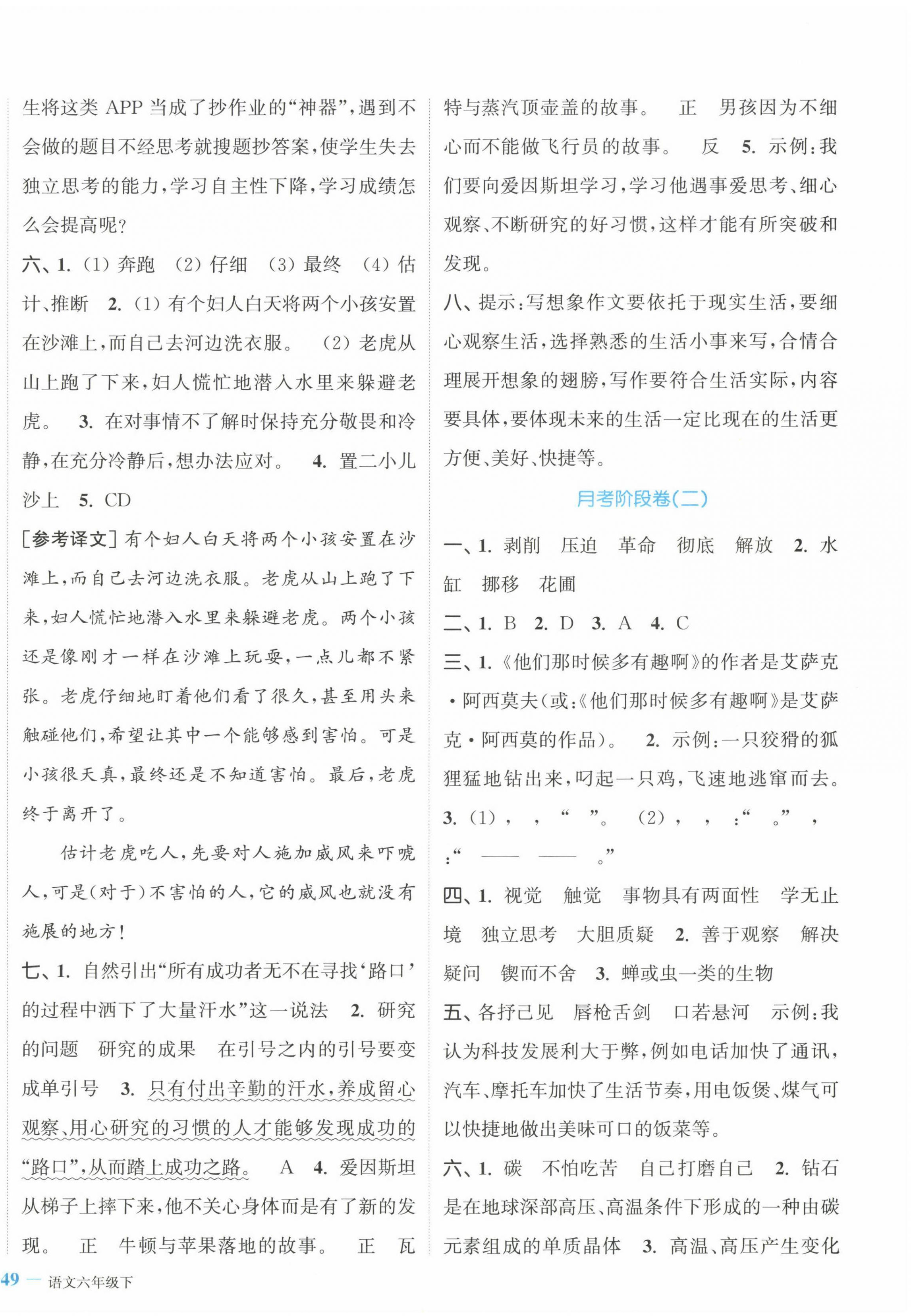 注:目前有些书本章节名称可能整理的还不是很完善,但都是按照顺序排列的,请同学们按照顺序仔细查找。练习册 2023年同步跟踪大试卷六年级语文下册人教版提优版 答案主要是用来给同学们做完题方便对答案用的,请勿直接抄袭。