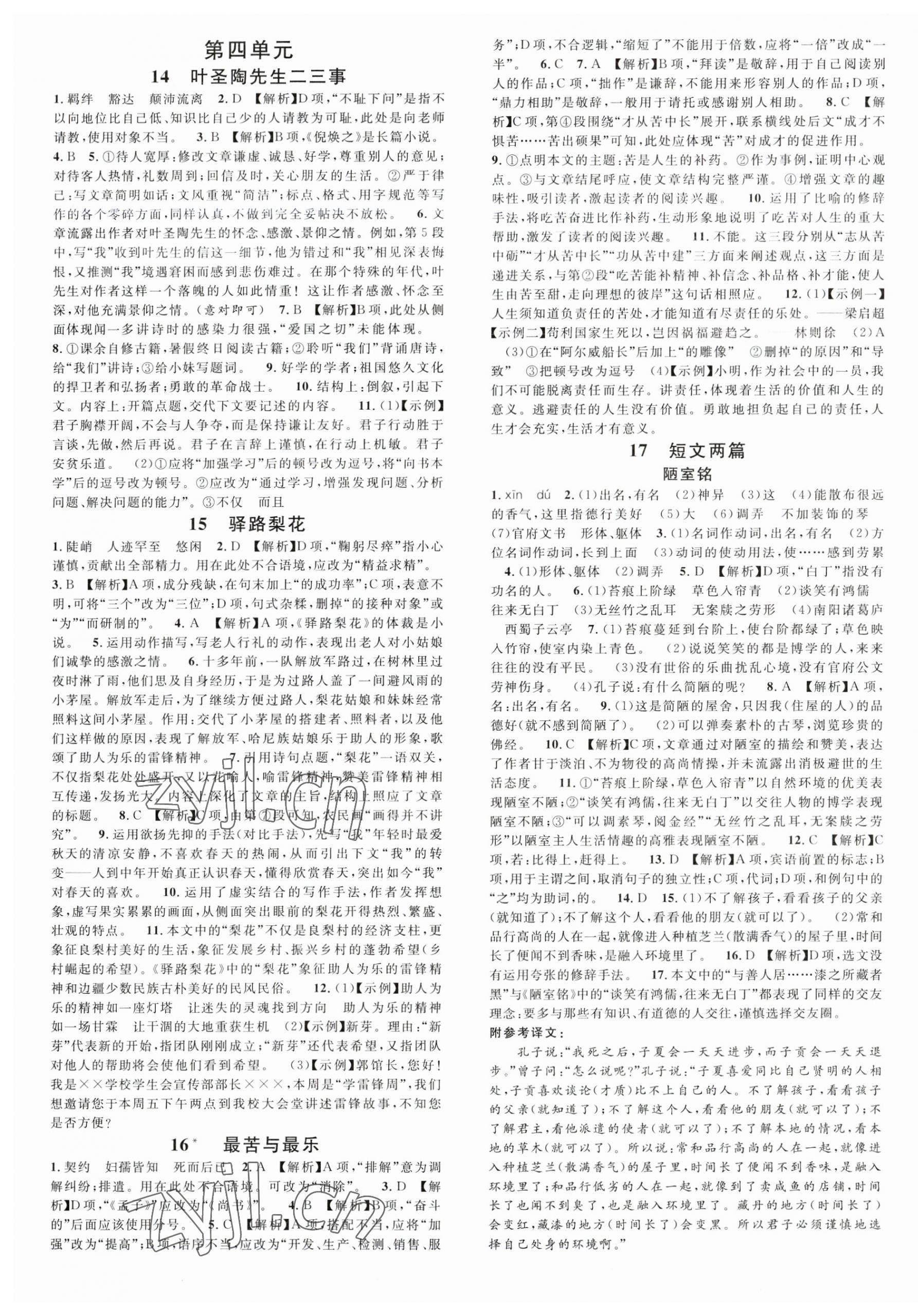 注:目前有些书本章节名称可能整理的还不是很完善,但都是按照顺序排列的,请同学们按照顺序仔细查找。练习册 2023年名校课堂七年级语文下册人教版贵阳专版 答案主要是用来给同学们做完题方便对答案用的,请勿直接抄袭。