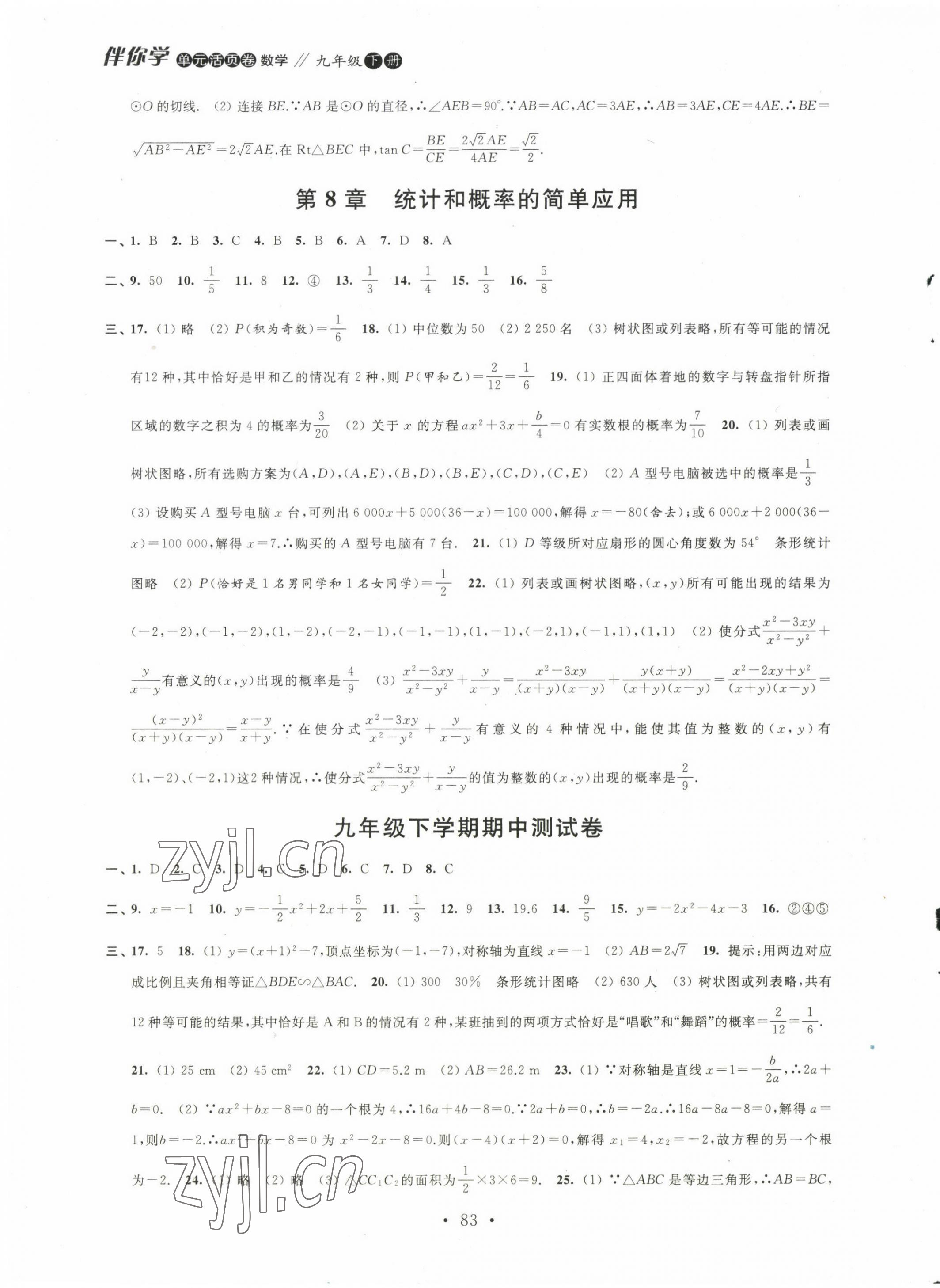 注:目前有些书本章节名称可能整理的还不是很完善,但都是按照顺序排列的,请同学们按照顺序仔细查找。练习册 2023年伴你学活页卷九年级数学下册苏科版 答案主要是用来给同学们做完题方便对答案用的,请勿直接抄袭。