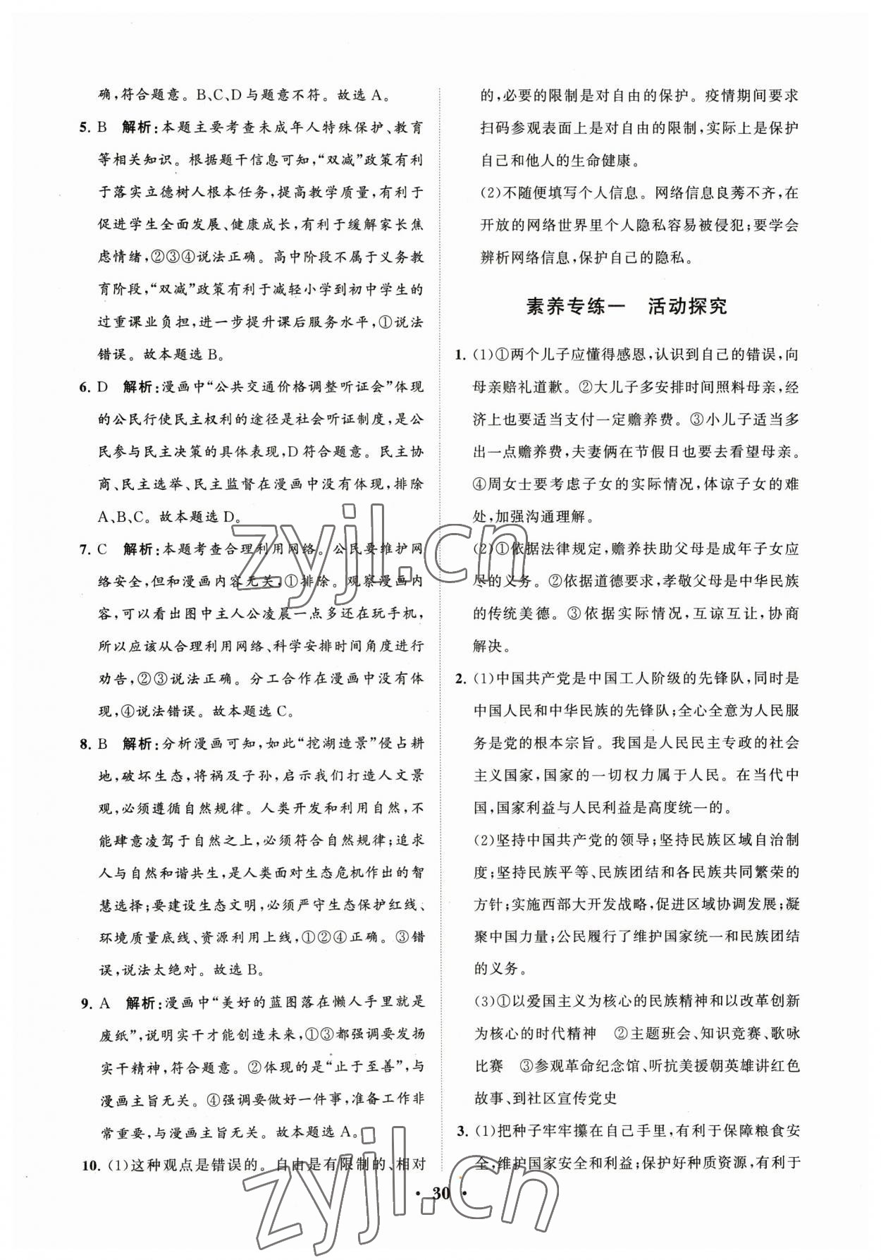 注:目前有些书本章节名称可能整理的还不是很完善,但都是按照顺序排列的,请同学们按照顺序仔细查找。练习册 2023年初中总复习手册分层专题卷道德与法治烟台专版 答案主要是用来给同学们做完题方便对答案用的,请勿直接抄袭。
