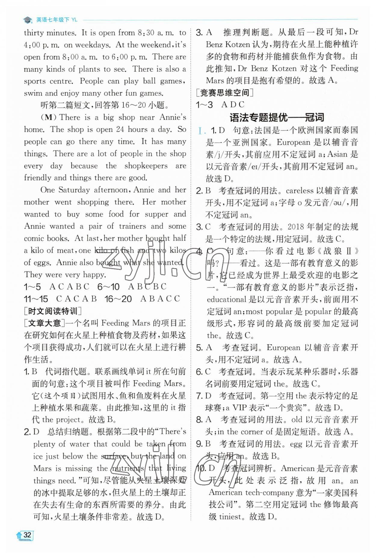 注:目前有些书本章节名称可能整理的还不是很完善,但都是按照顺序排列的,请同学们按照顺序仔细查找。练习册 2023年实验班提优训练七年级英语下册译林版江苏专版 答案主要是用来给同学们做完题方便对答案用的,请勿直接抄袭。