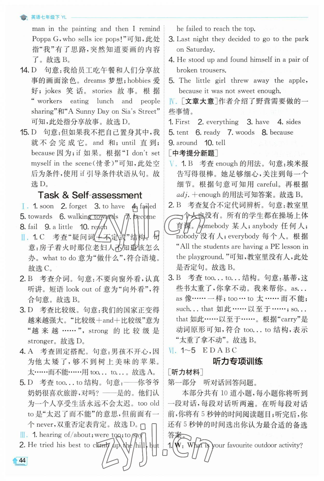 注:目前有些书本章节名称可能整理的还不是很完善,但都是按照顺序排列的,请同学们按照顺序仔细查找。练习册 2023年实验班提优训练七年级英语下册译林版江苏专版 答案主要是用来给同学们做完题方便对答案用的,请勿直接抄袭。