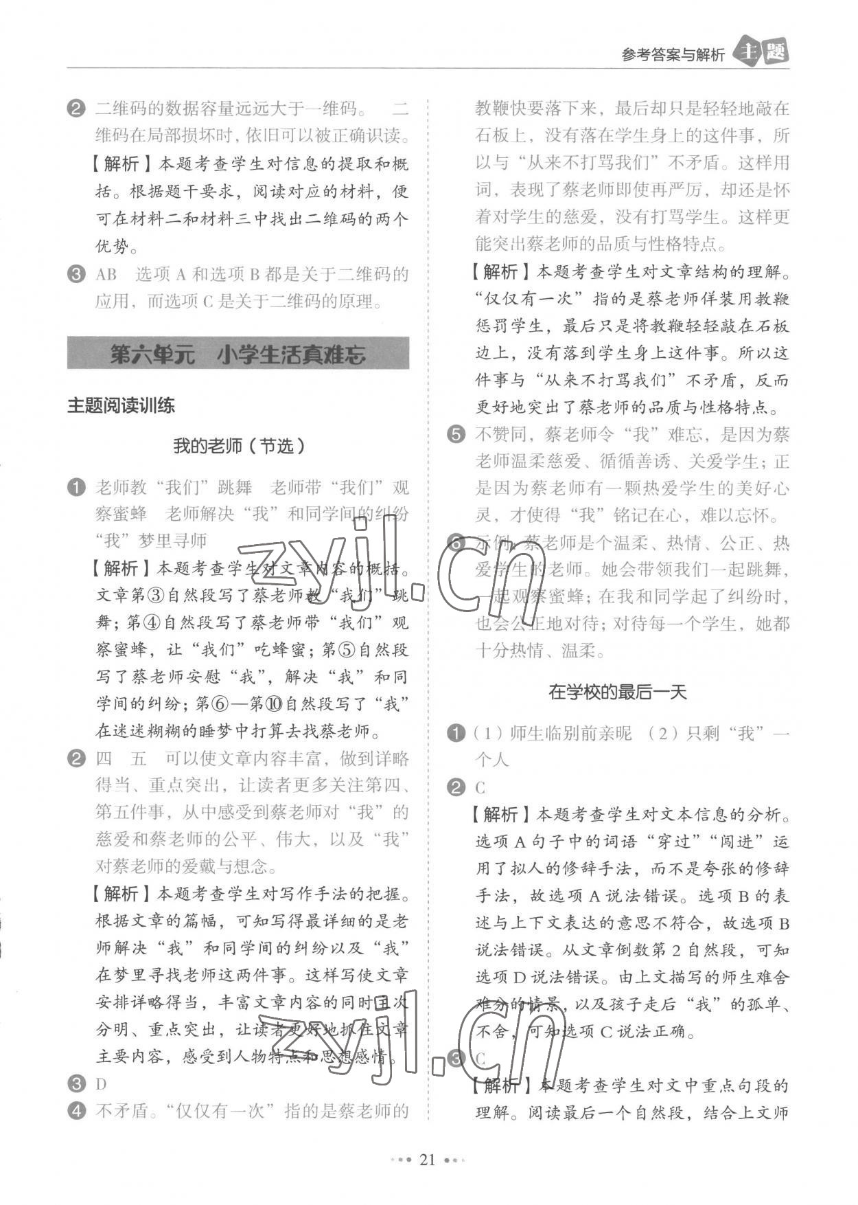 注:目前有些书本章节名称可能整理的还不是很完善,但都是按照顺序排列的,请同学们按照顺序仔细查找。练习册 2023年主题阅读训练100分六年级语文B版 答案主要是用来给同学们做完题方便对答案用的,请勿直接抄袭。