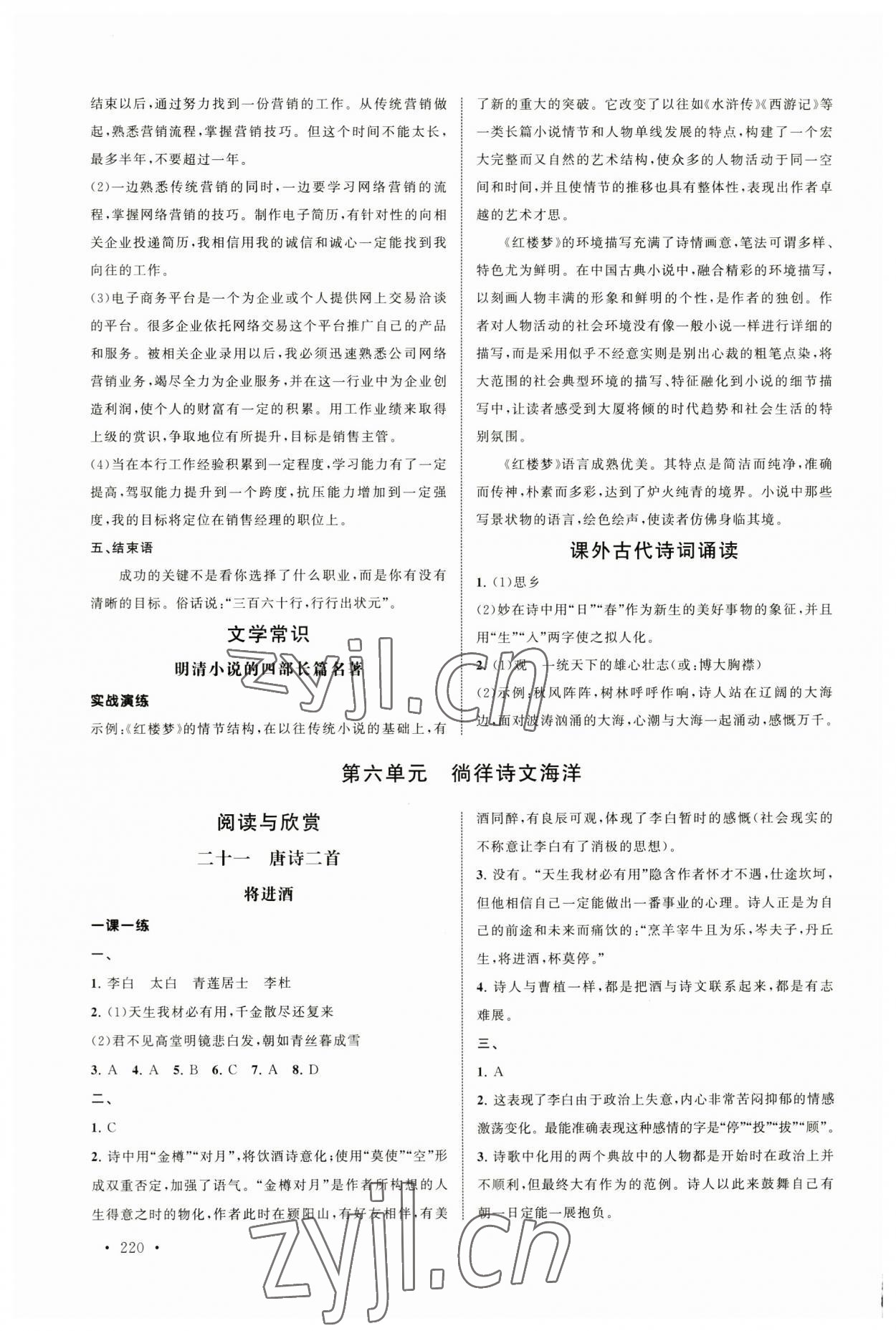 2023年导学与同步训练江西科学技术出版社中职语文下册