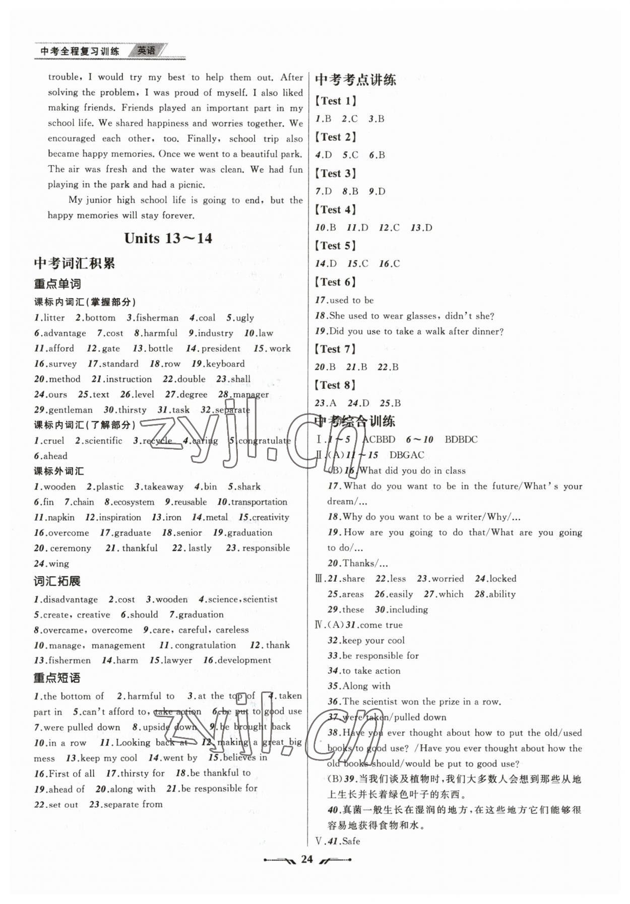注:目前有些书本章节名称可能整理的还不是很完善,但都是按照顺序排列的,请同学们按照顺序仔细查找。练习册 2023年中考全程复习训练英语锦州专版 答案主要是用来给同学们做完题方便对答案用的,请勿直接抄袭。