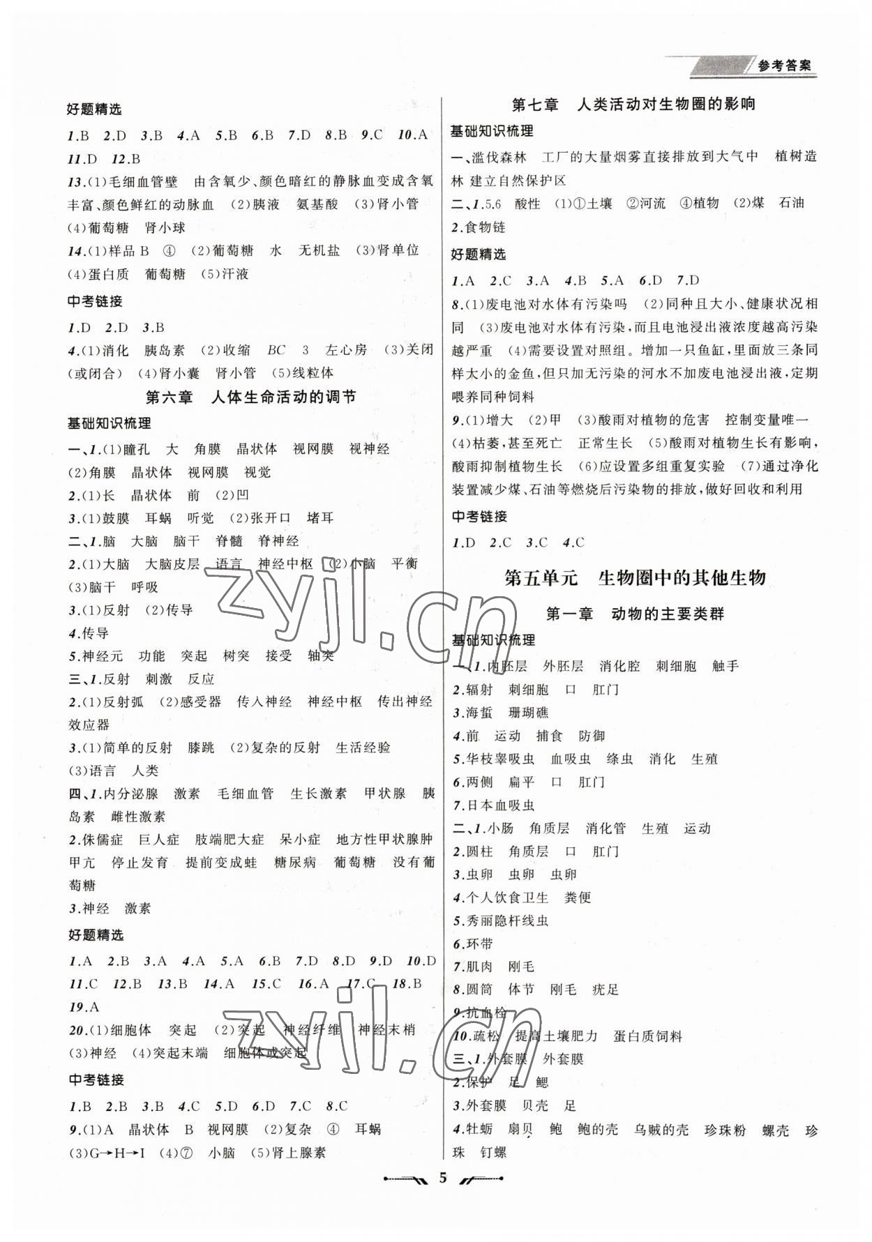 注:目前有些书本章节名称可能整理的还不是很完善,但都是按照顺序排列的,请同学们按照顺序仔细查找。练习册 2023年中考全程复习训练生物锦州专版 答案主要是用来给同学们做完题方便对答案用的,请勿直接抄袭。