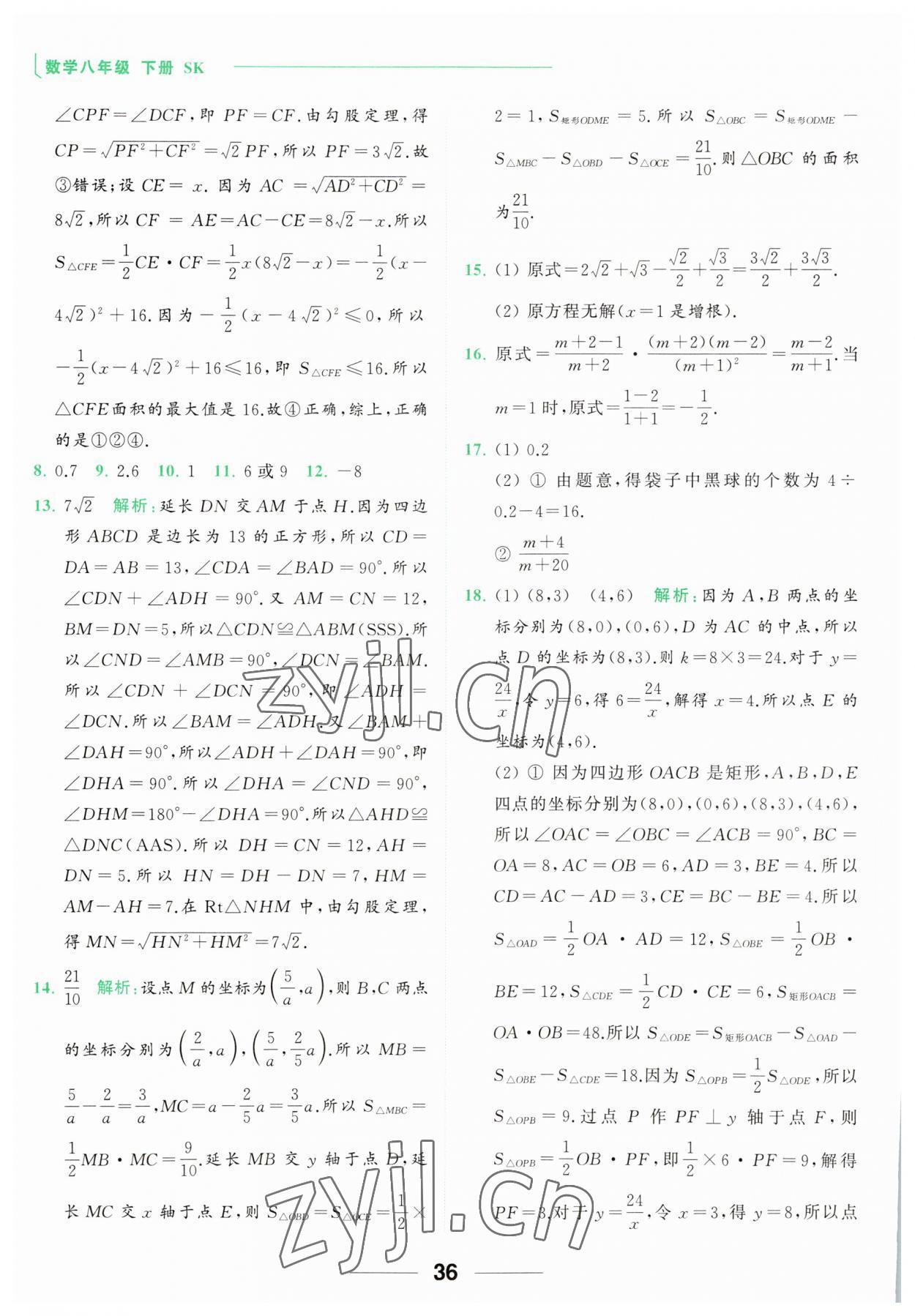 注:目前有些书本章节名称可能整理的还不是很完善,但都是按照顺序排列的,请同学们按照顺序仔细查找。练习册 2023年亮点给力计算能力训练八年级数学下册苏科版 答案主要是用来给同学们做完题方便对答案用的,请勿直接抄袭。