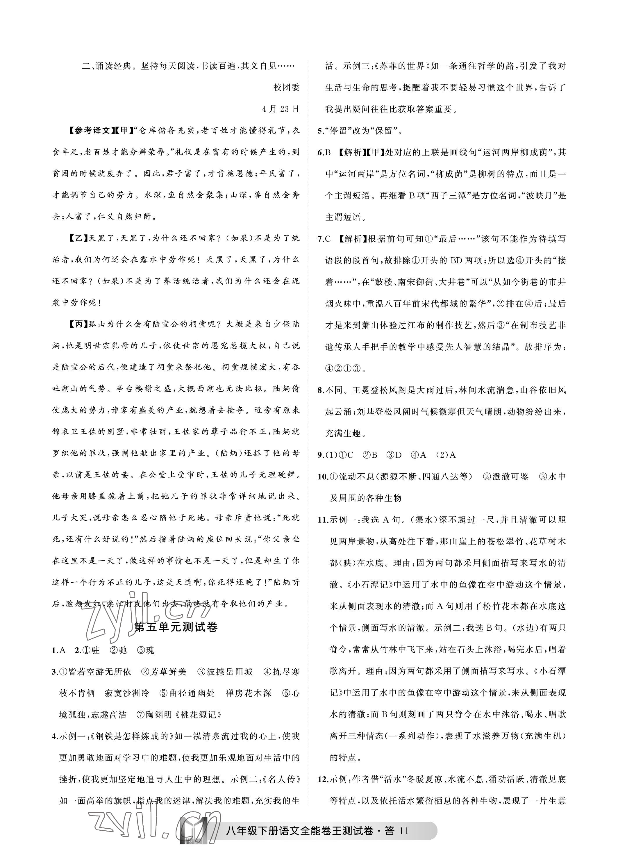 注:目前有些书本章节名称可能整理的还不是很完善,但都是按照顺序排列的,请同学们按照顺序仔细查找。练习册 2023年全能卷王单元测试卷八年级语文下册人教版 答案主要是用来给同学们做完题方便对答案用的,请勿直接抄袭。