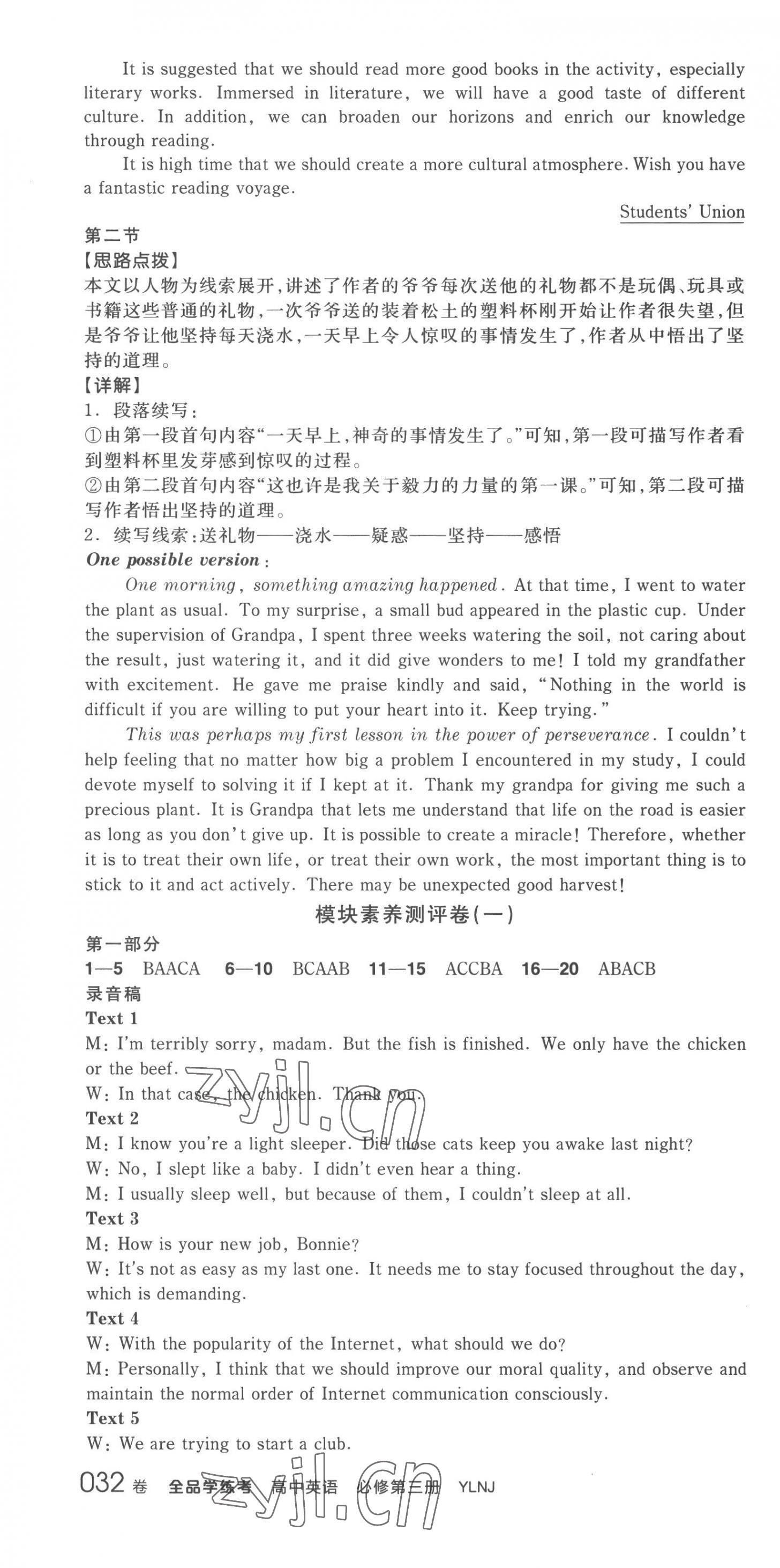 注:目前有些书本章节名称可能整理的还不是很完善,但都是按照顺序排列的,请同学们按照顺序仔细查找。练习册 2023年全品学练考高中英语必修第三册译林版 答案主要是用来给同学们做完题方便对答案用的,请勿直接抄袭。