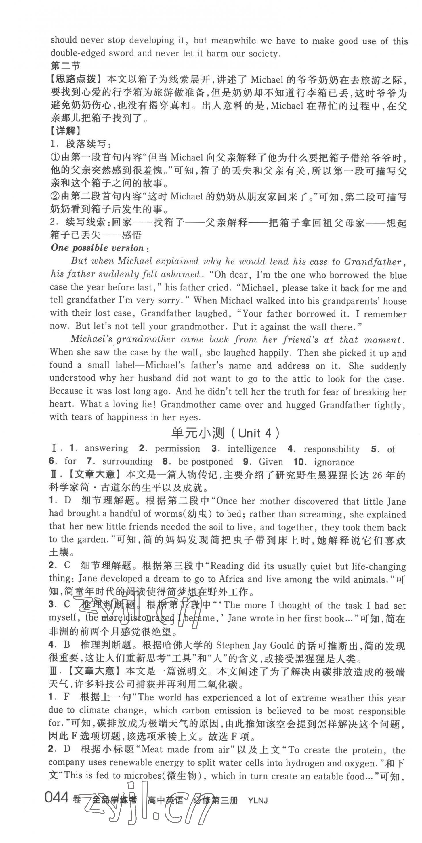 注:目前有些书本章节名称可能整理的还不是很完善,但都是按照顺序排列的,请同学们按照顺序仔细查找。练习册 2023年全品学练考高中英语必修第三册译林版 答案主要是用来给同学们做完题方便对答案用的,请勿直接抄袭。