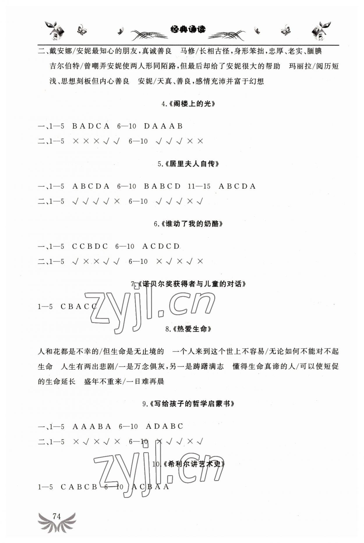注:目前有些书本章节名称可能整理的还不是很完善,但都是按照顺序排列的,请同学们按照顺序仔细查找。练习册 2023年经典诵读过关提优测试六年级语文下册人教版 答案主要是用来给同学们做完题方便对答案用的,请勿直接抄袭。