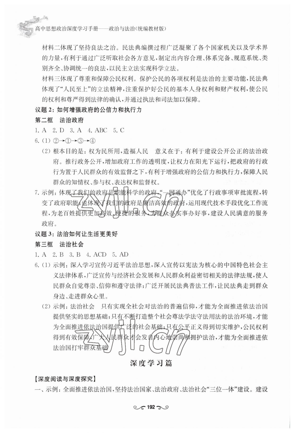 注:目前有些书本章节名称可能整理的还不是很完善,但都是按照顺序排列的,请同学们按照顺序仔细查找。练习册 2023年深度学习手册高中道德与法治必修3人教版 答案主要是用来给同学们做完题方便对答案用的,请勿直接抄袭。