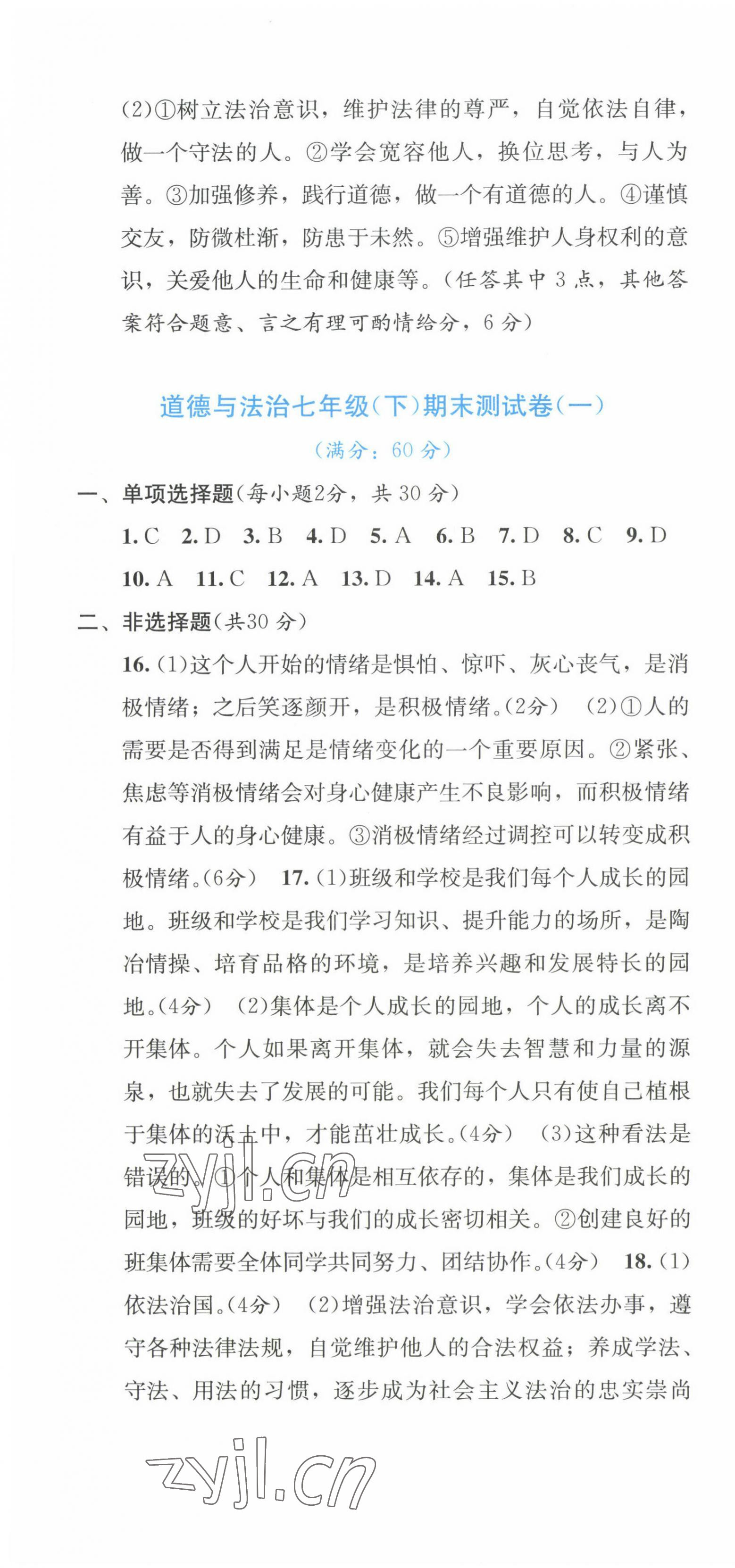 注:目前有些书本章节名称可能整理的还不是很完善,但都是按照顺序排列的,请同学们按照顺序仔细查找。练习册 2023年全程检测单元测试卷七年级道德与法治下册人教版 答案主要是用来给同学们做完题方便对答案用的,请勿直接抄袭。