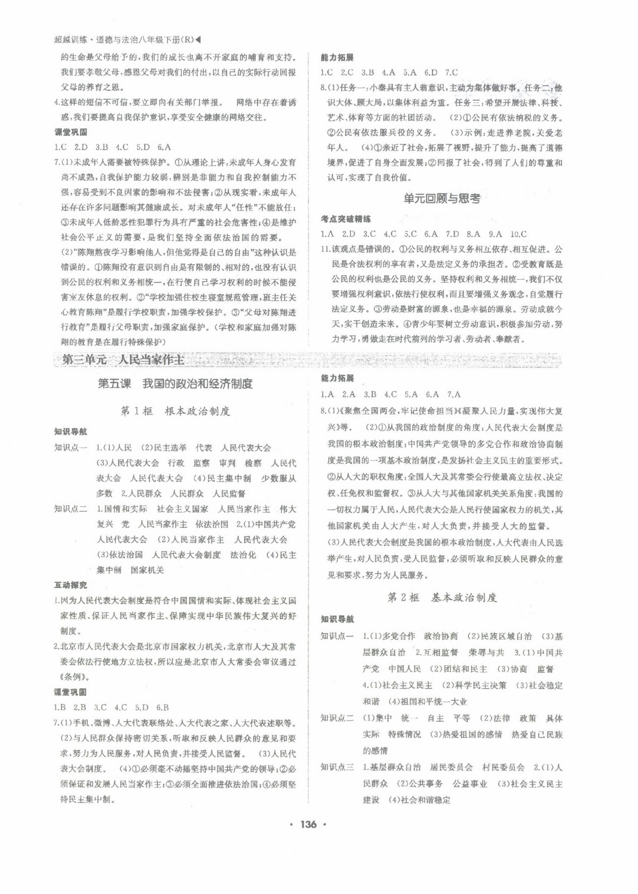 注:目前有些书本章节名称可能整理的还不是很完善,但都是按照顺序排列的,请同学们按照顺序仔细查找。练习册 2023年超越训练八年级道德与法治下册人教版 答案主要是用来给同学们做完题方便对答案用的,请勿直接抄袭。