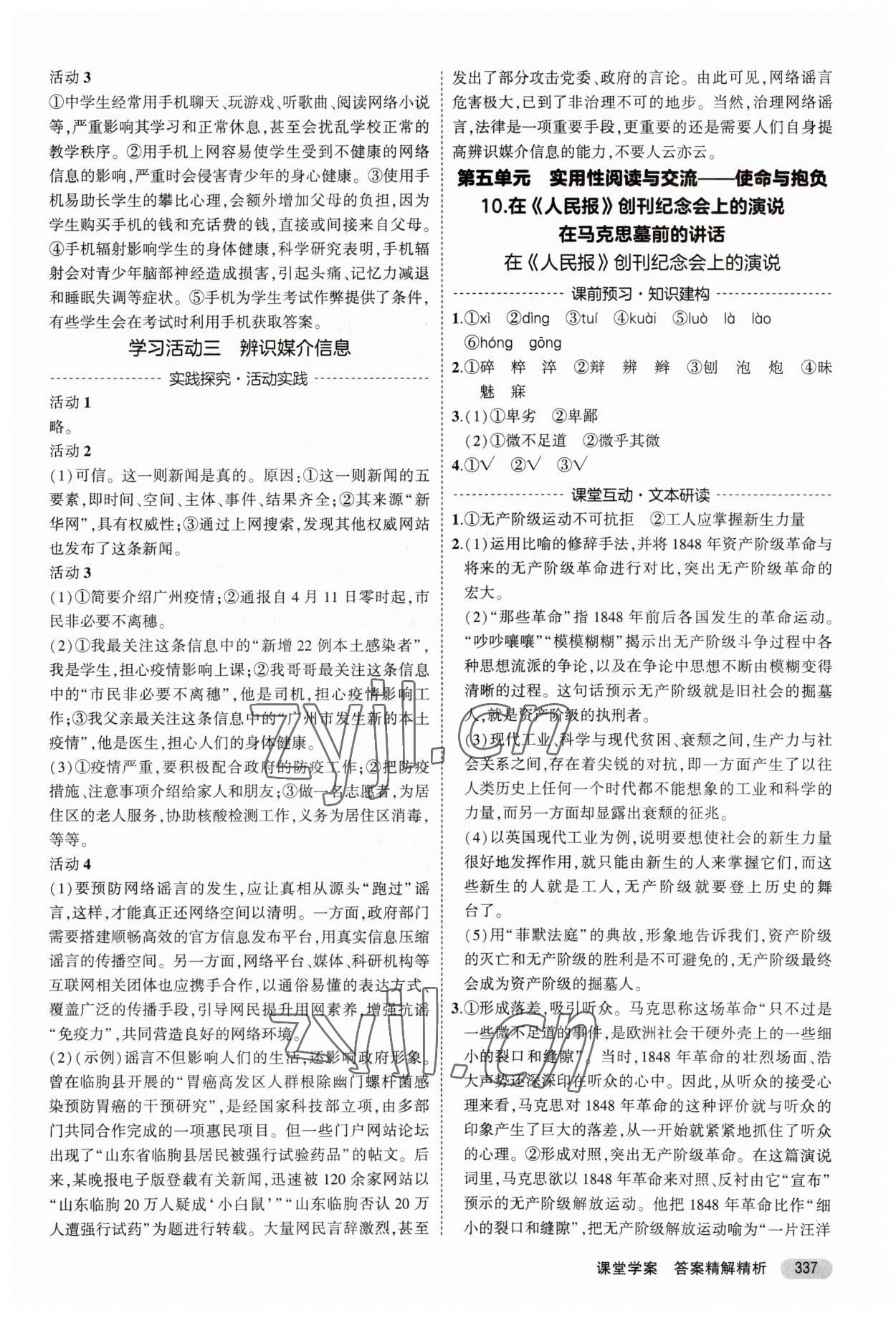 注:目前有些书本章节名称可能整理的还不是很完善,但都是按照顺序排列的,请同学们按照顺序仔细查找。练习册 2023年3年高考2年模拟高中语文必修下册人教版 答案主要是用来给同学们做完题方便对答案用的,请勿直接抄袭。