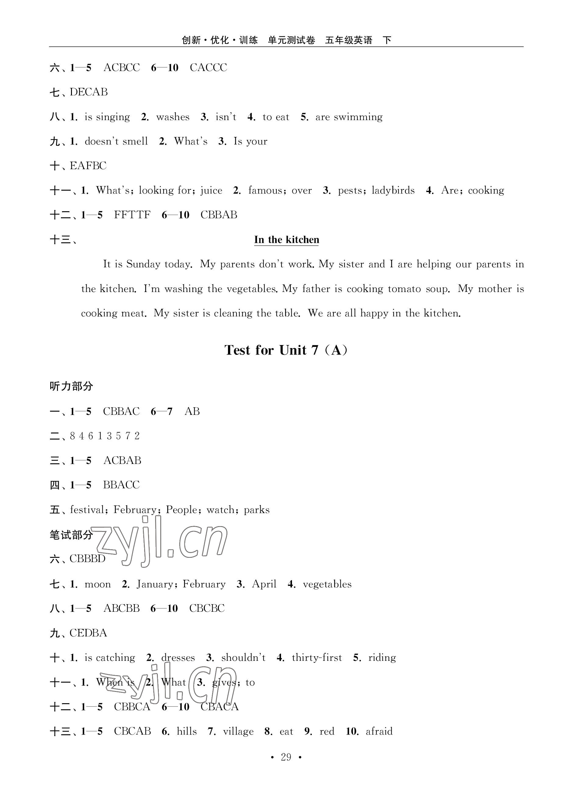 注:目前有些书本章节名称可能整理的还不是很完善,但都是按照顺序排列的,请同学们按照顺序仔细查找。练习册 2023年创新优化训练单元测试卷五年级英语下册译林版 答案主要是用来给同学们做完题方便对答案用的,请勿直接抄袭。