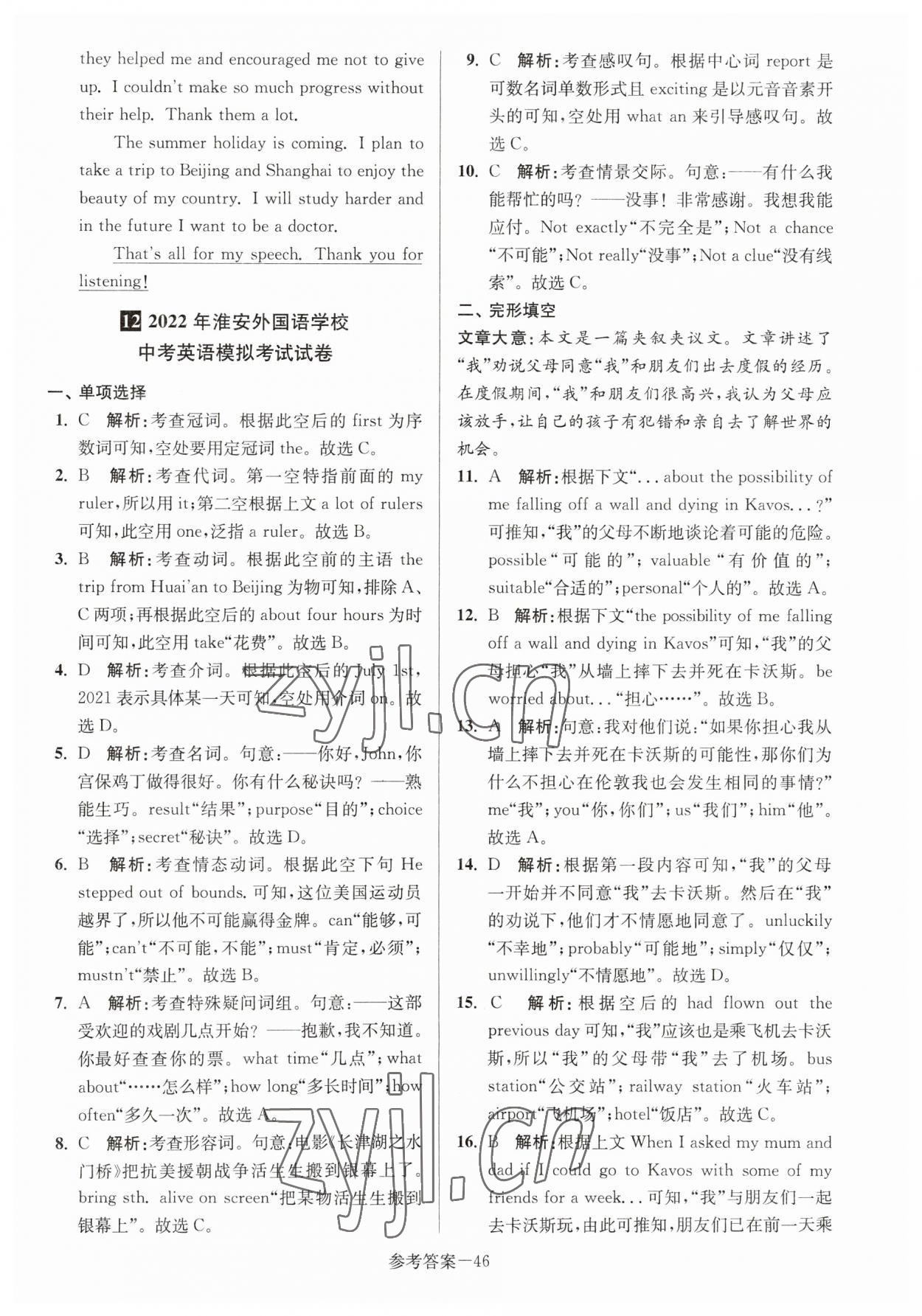2023年淮安市中考总复习一卷通历年真卷精编英语