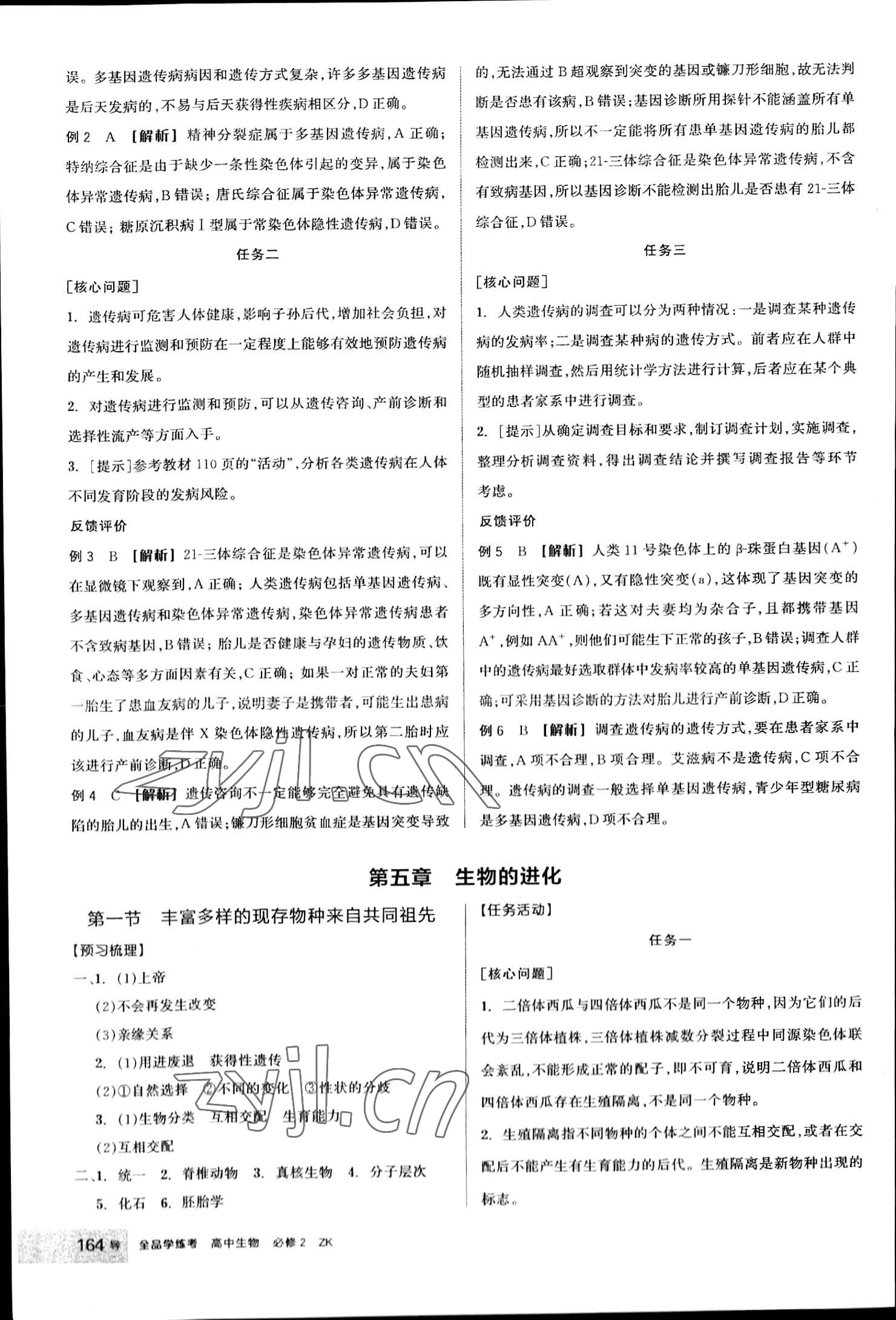 注:目前有些书本章节名称可能整理的还不是很完善,但都是按照顺序排列的,请同学们按照顺序仔细查找。练习册 2023年全品学练考高中生物必修2浙科版 答案主要是用来给同学们做完题方便对答案用的,请勿直接抄袭。