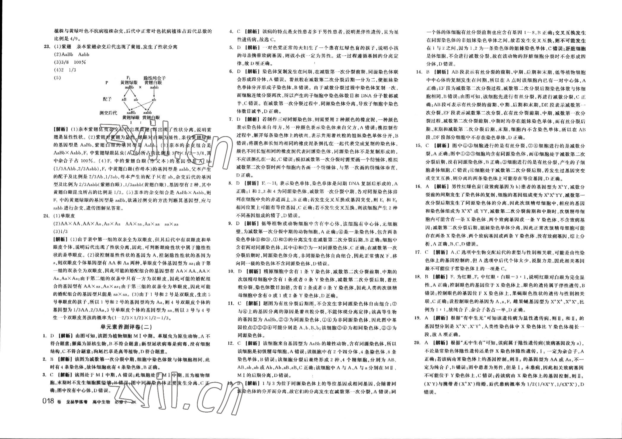 注:目前有些书本章节名称可能整理的还不是很完善,但都是按照顺序排列的,请同学们按照顺序仔细查找。练习册 2023年全品学练考高中生物必修2浙科版 答案主要是用来给同学们做完题方便对答案用的,请勿直接抄袭。