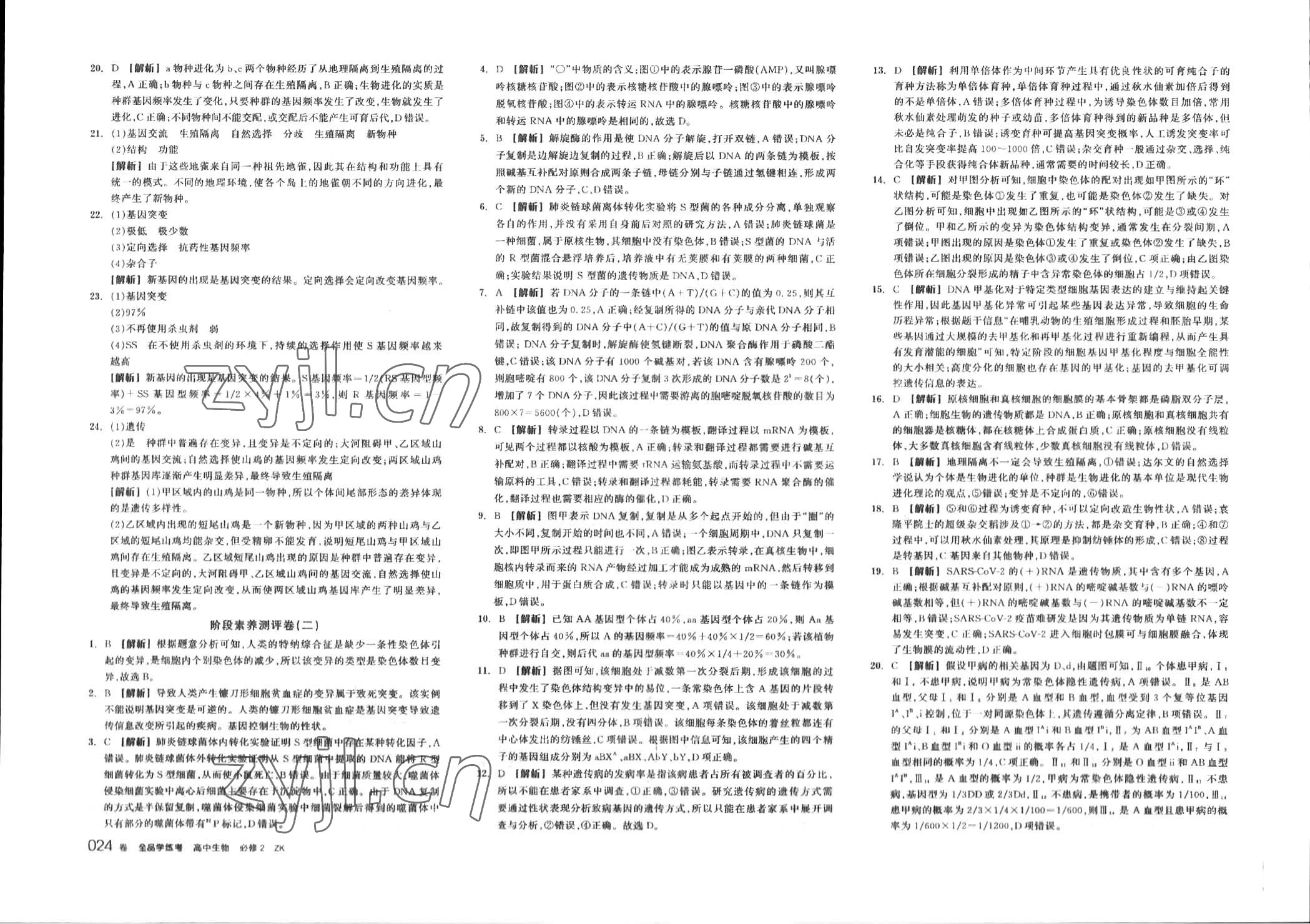 注:目前有些书本章节名称可能整理的还不是很完善,但都是按照顺序排列的,请同学们按照顺序仔细查找。练习册 2023年全品学练考高中生物必修2浙科版 答案主要是用来给同学们做完题方便对答案用的,请勿直接抄袭。