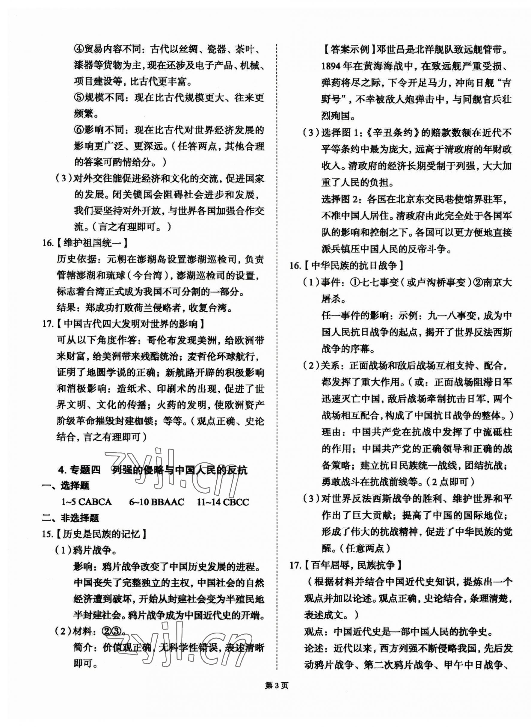 注:目前有些书本章节名称可能整理的还不是很完善,但都是按照顺序排列的,请同学们按照顺序仔细查找。练习册 2023年天下中考专题总复习历史中考 答案主要是用来给同学们做完题方便对答案用的,请勿直接抄袭。