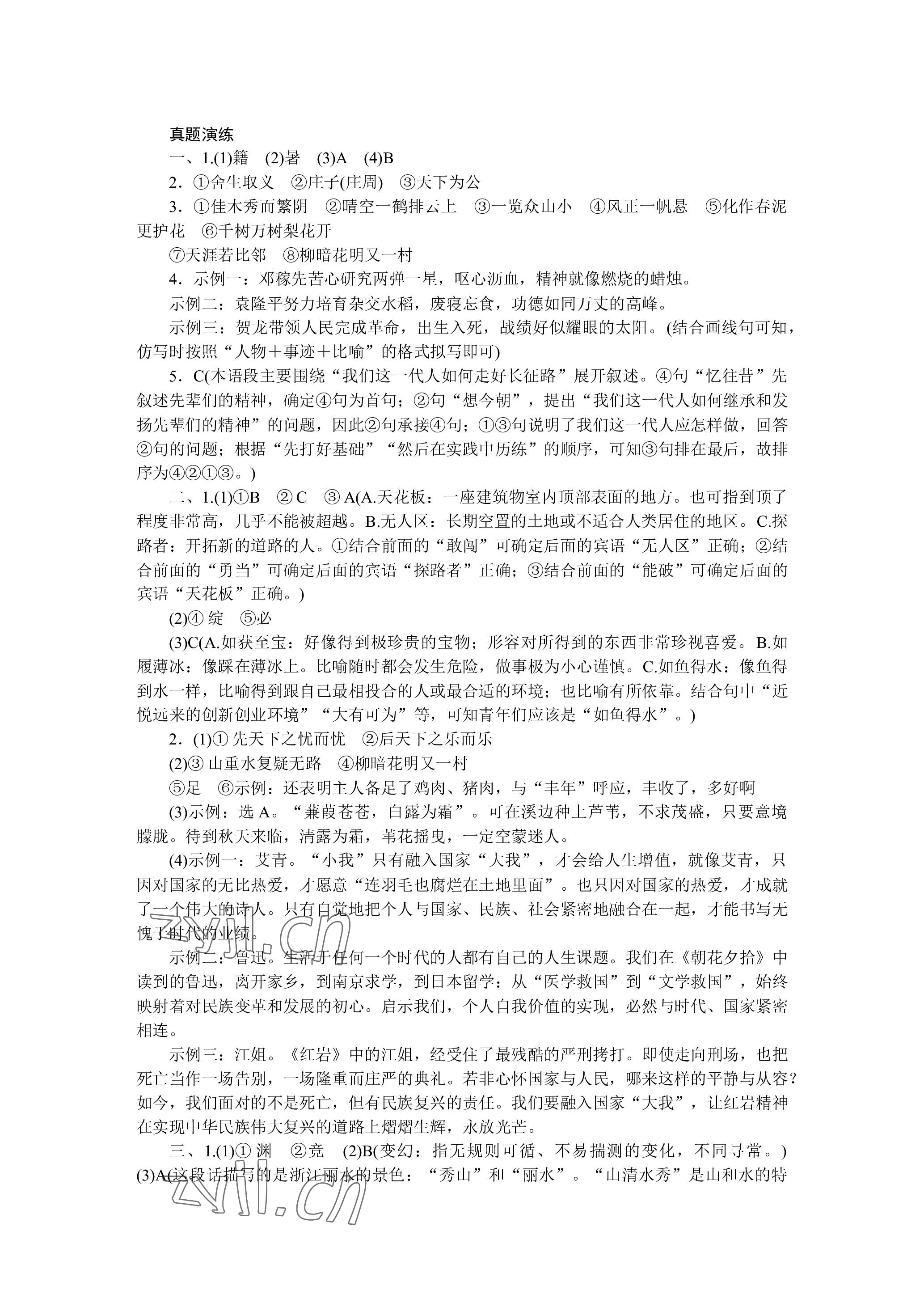 注:目前有些书本章节名称可能整理的还不是很完善,但都是按照顺序排列的,请同学们按照顺序仔细查找。练习册 2023年高分计划中考语文杭州专版 答案主要是用来给同学们做完题方便对答案用的,请勿直接抄袭。