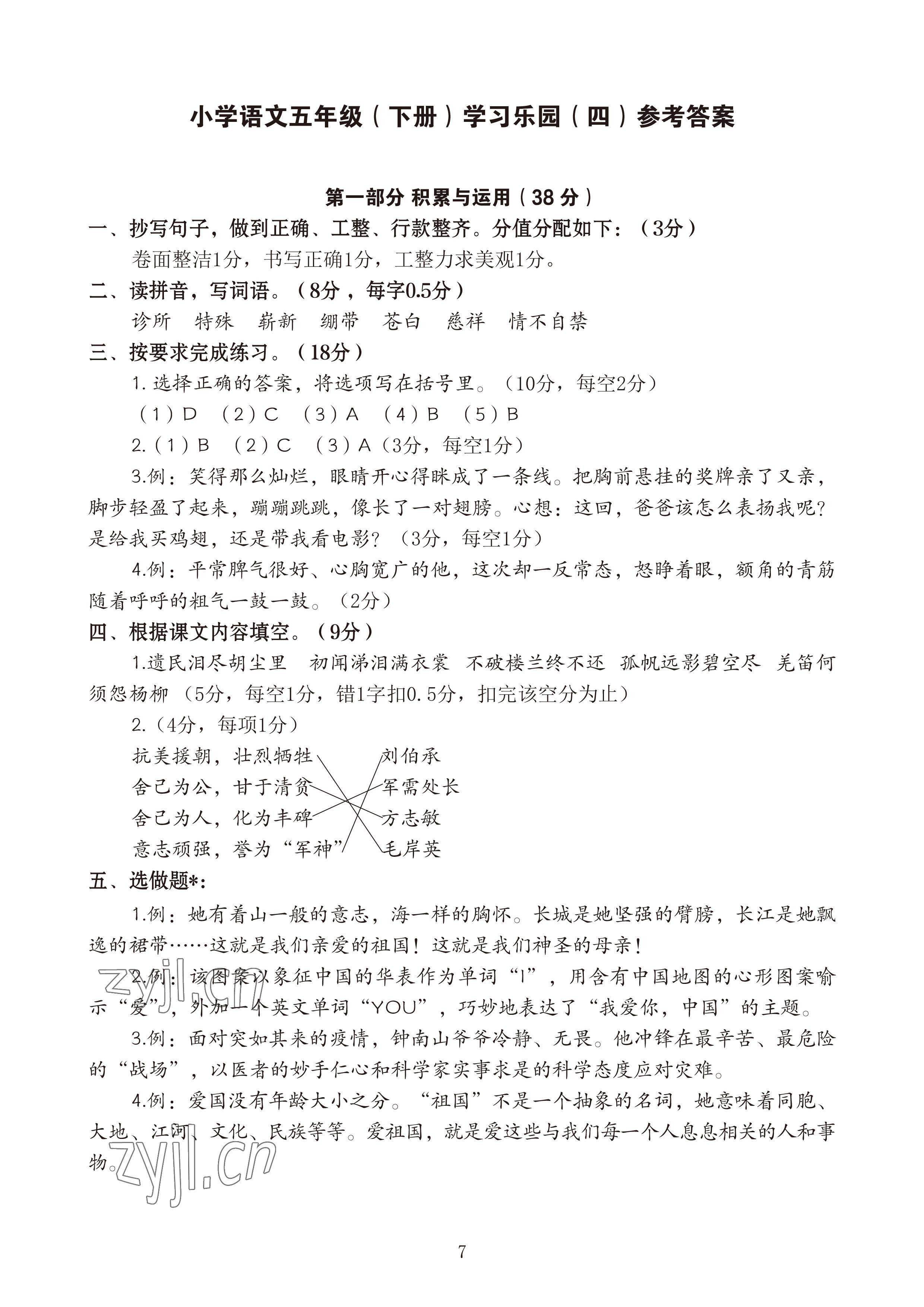 注:目前有些书本章节名称可能整理的还不是很完善,但都是按照顺序排列的,请同学们按照顺序仔细查找。练习册 2023年七彩语文五年级语文下册人教版 答案主要是用来给同学们做完题方便对答案用的,请勿直接抄袭。