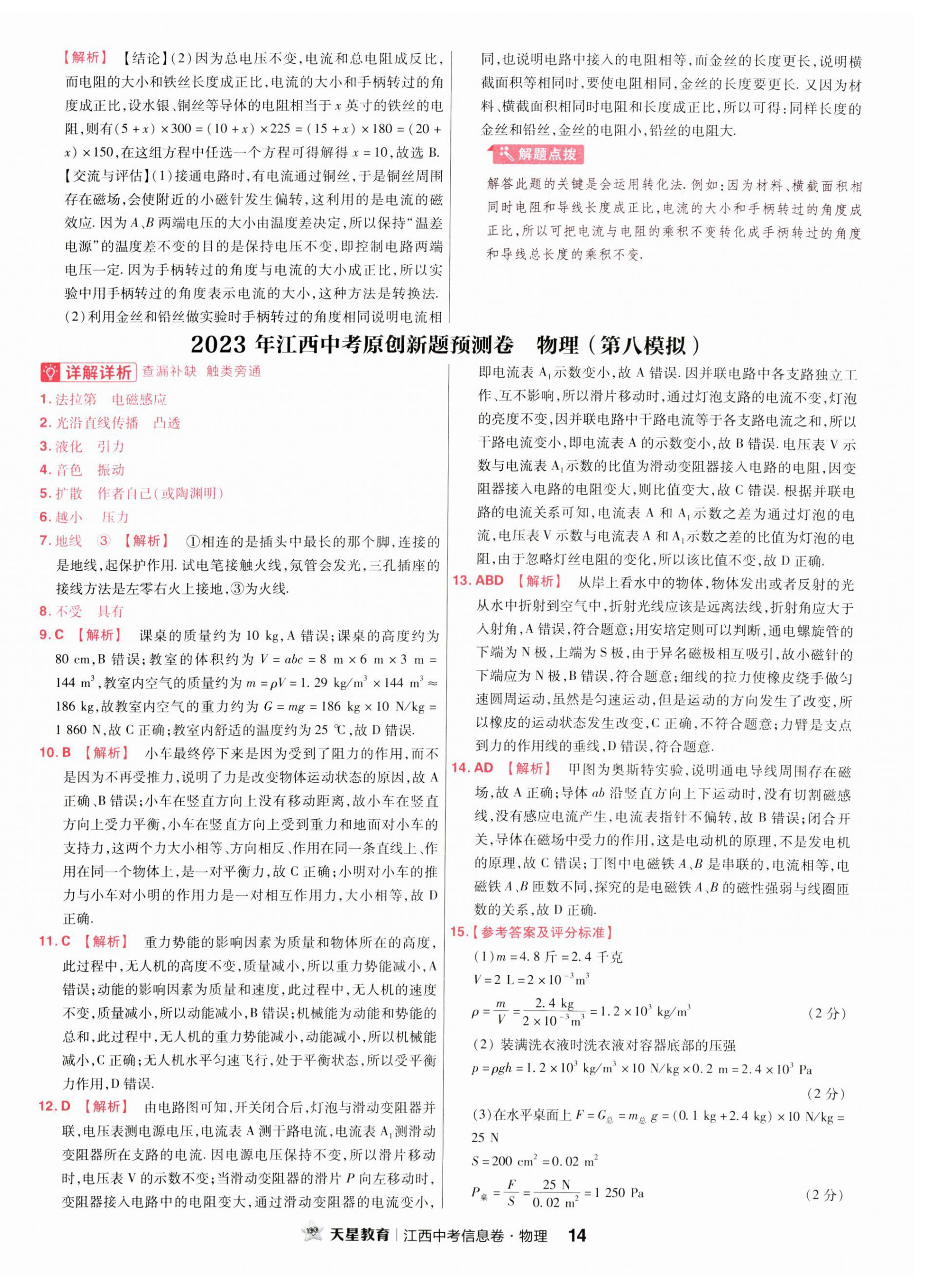注:目前有些书本章节名称可能整理的还不是很完善,但都是按照顺序排列的,请同学们按照顺序仔细查找。练习册 2023年金考卷百校联盟系列江西中考信息卷物理 答案主要是用来给同学们做完题方便对答案用的,请勿直接抄袭。