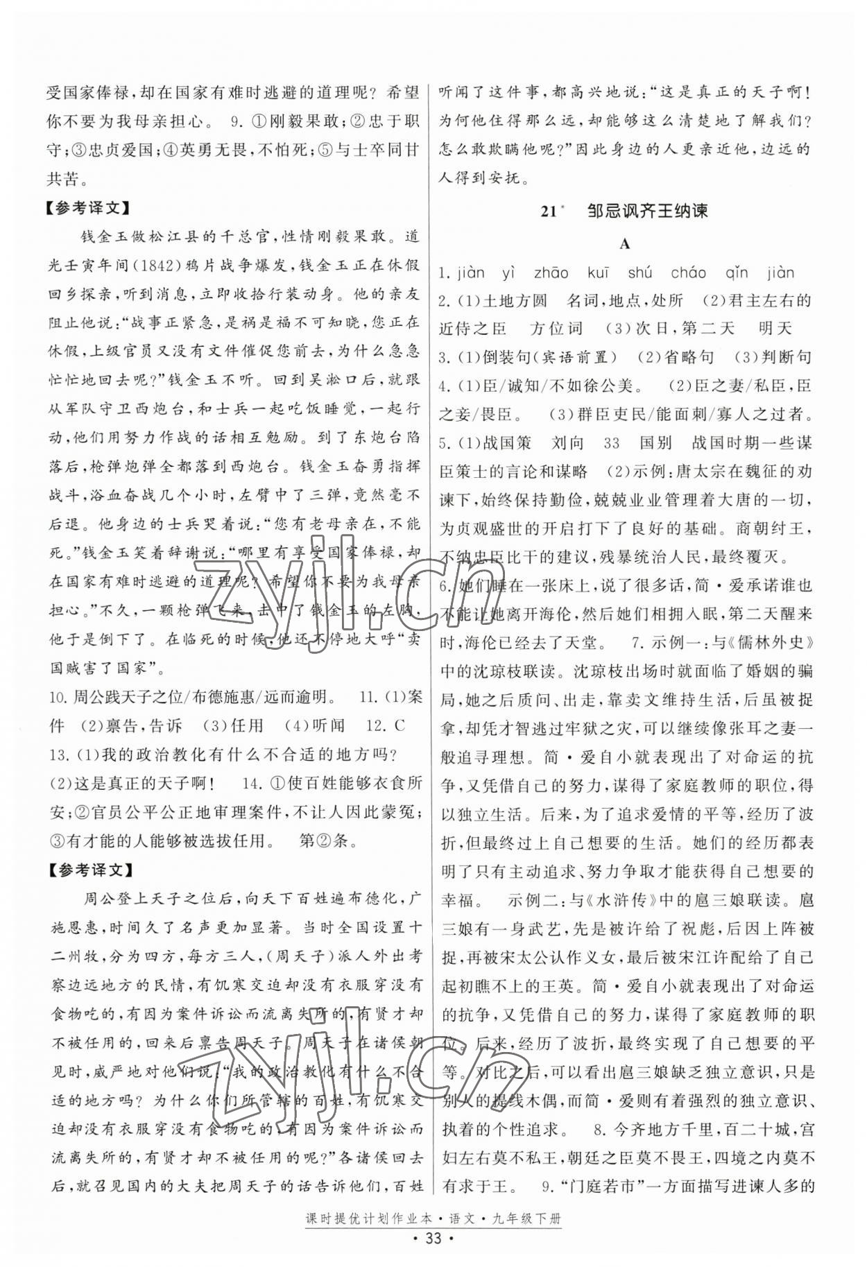 《2023年课时提优计划作业本九年级语文下册人教版版次2023.1月》