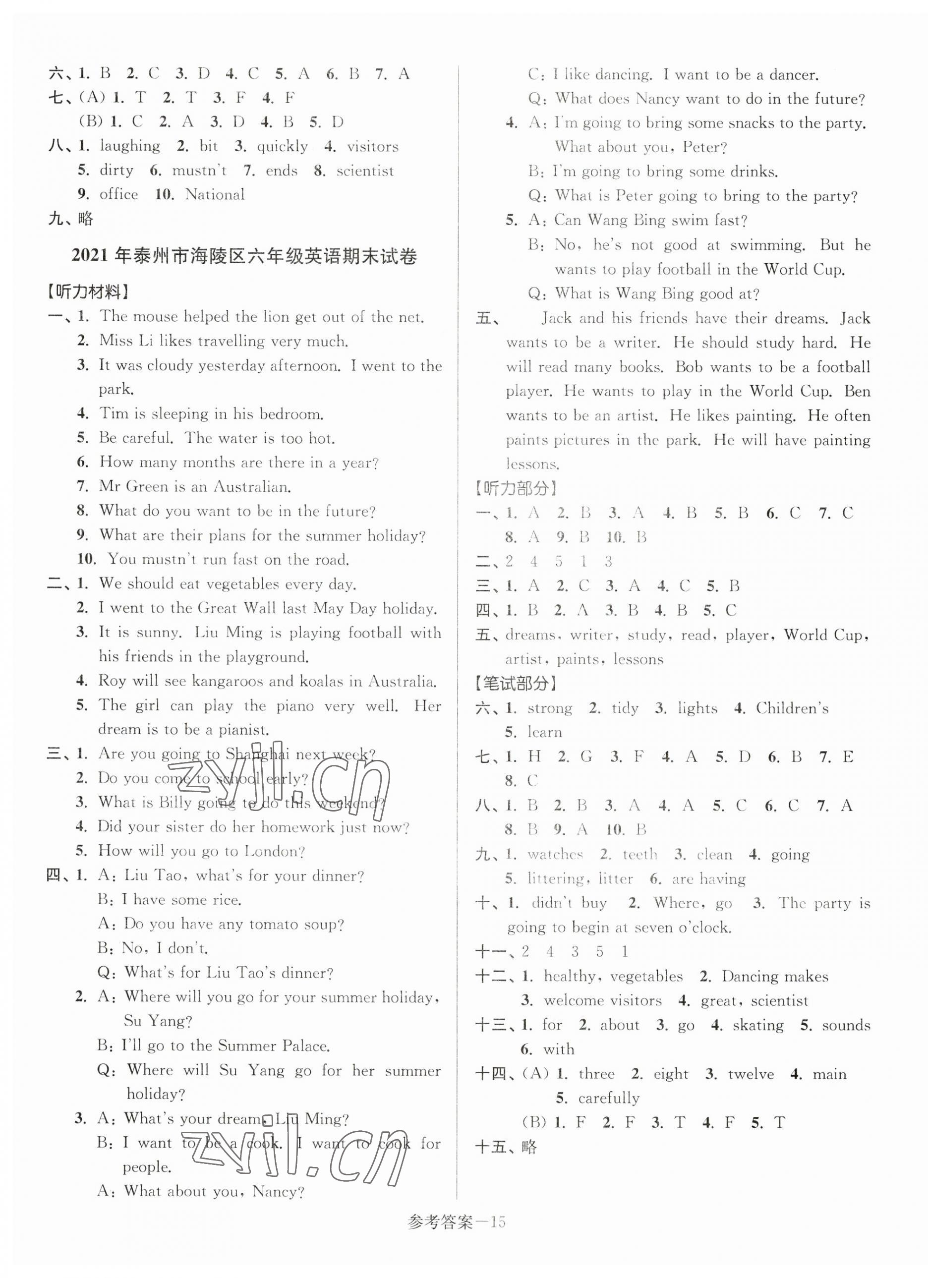 注:目前有些书本章节名称可能整理的还不是很完善,但都是按照顺序排列的,请同学们按照顺序仔细查找。练习册 2023年超能学典江苏13大市名牌小学毕业升学真卷精编英语 答案主要是用来给同学们做完题方便对答案用的,请勿直接抄袭。
