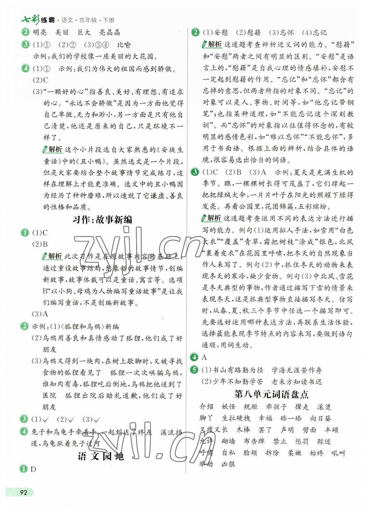 注:目前有些书本章节名称可能整理的还不是很完善,但都是按照顺序排列的,请同学们按照顺序仔细查找。练习册 2023年七彩练霸四年级语文下册人教版 答案主要是用来给同学们做完题方便对答案用的,请勿直接抄袭。