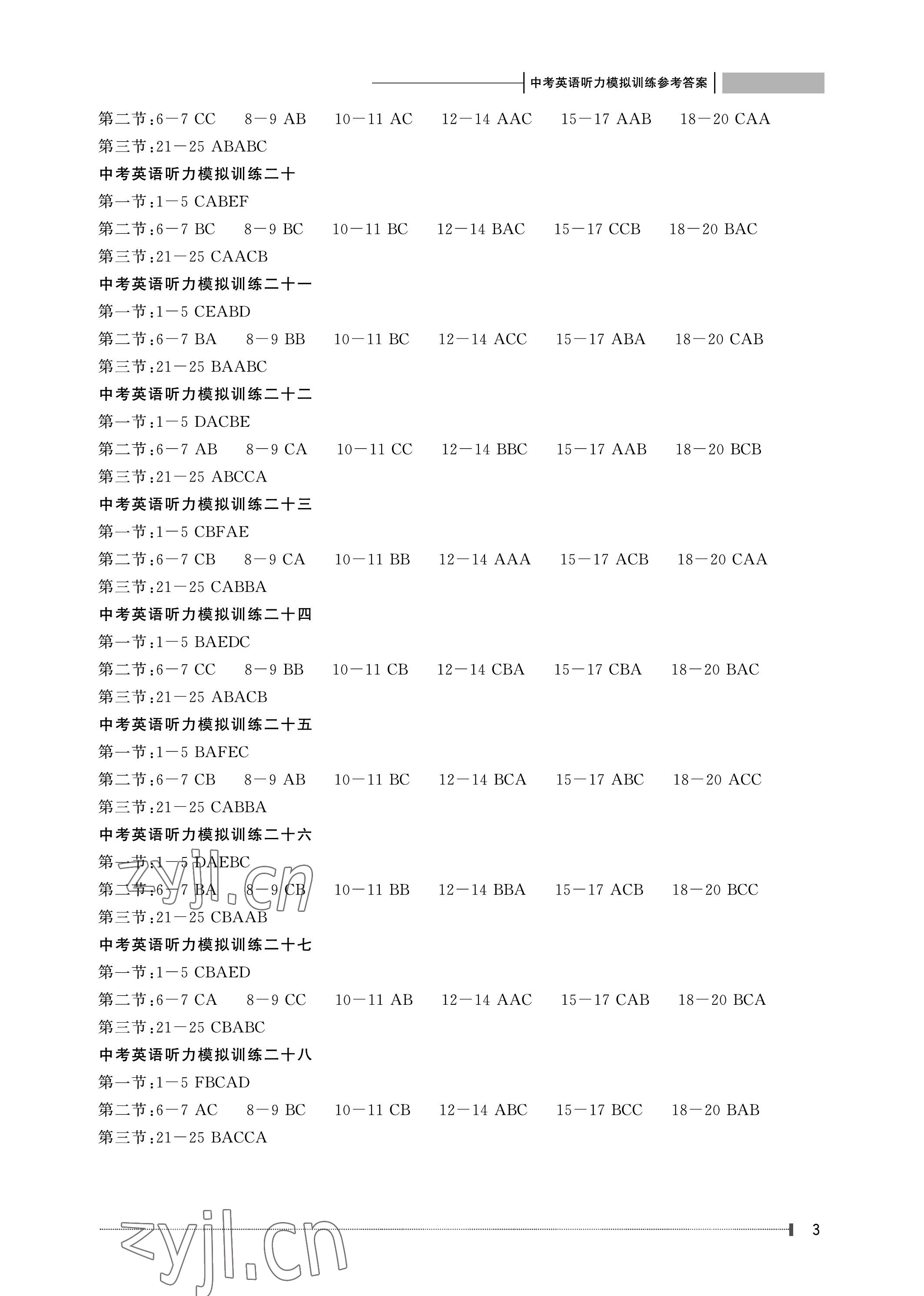 注:目前有些书本章节名称可能整理的还不是很完善,但都是按照顺序排列的,请同学们按照顺序仔细查找。练习册 2023年中考英语听力模拟训练长江少年儿童出版英语 答案主要是用来给同学们做完题方便对答案用的,请勿直接抄袭。