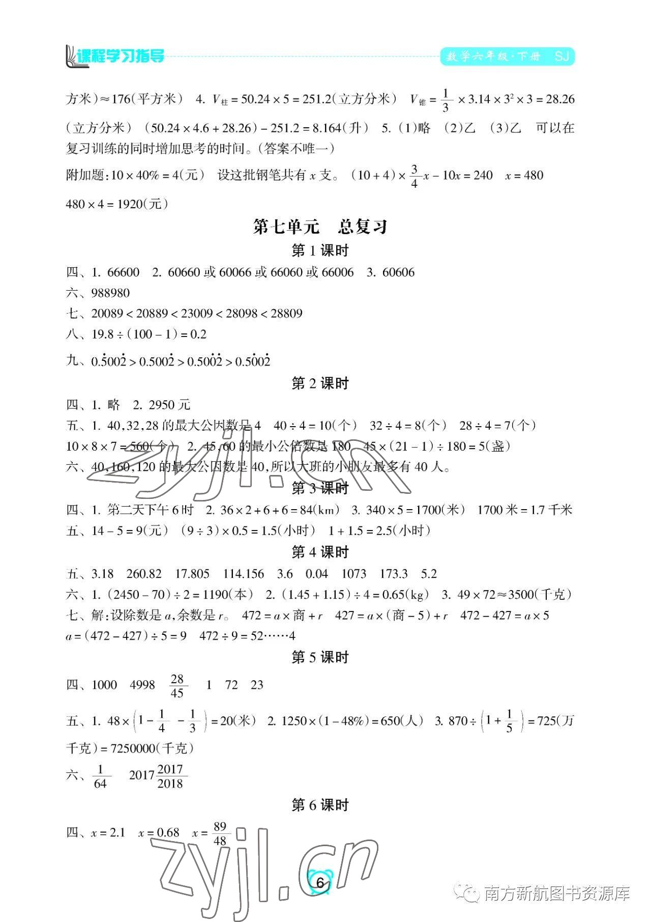 注:目前有些书本章节名称可能整理的还不是很完善,但都是按照顺序排列的,请同学们按照顺序仔细查找。练习册 2023年新课程学习指导南方出版社六年级数学下册苏教版 答案主要是用来给同学们做完题方便对答案用的,请勿直接抄袭。