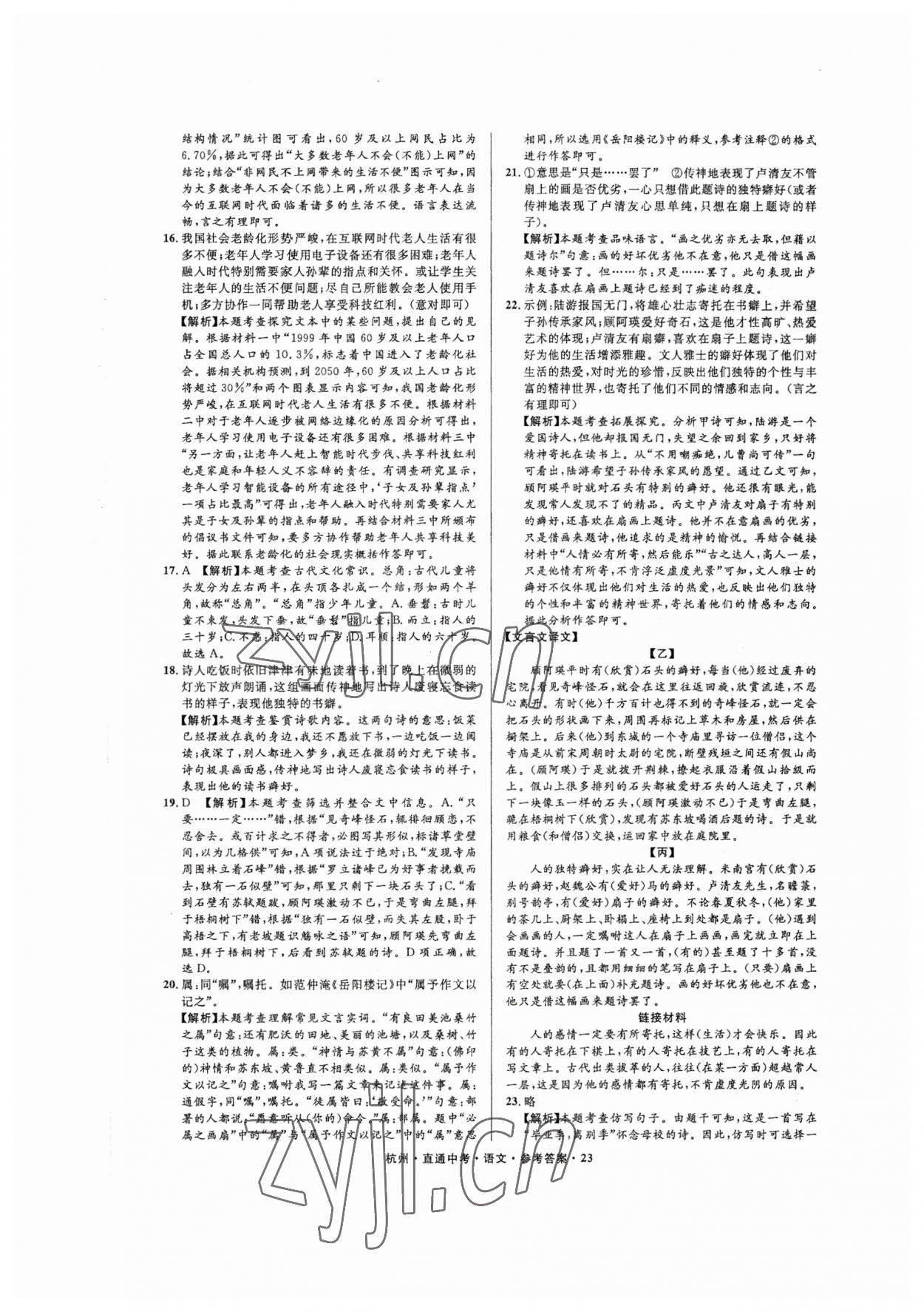2023年直通中考中考试题精编语文杭州专版