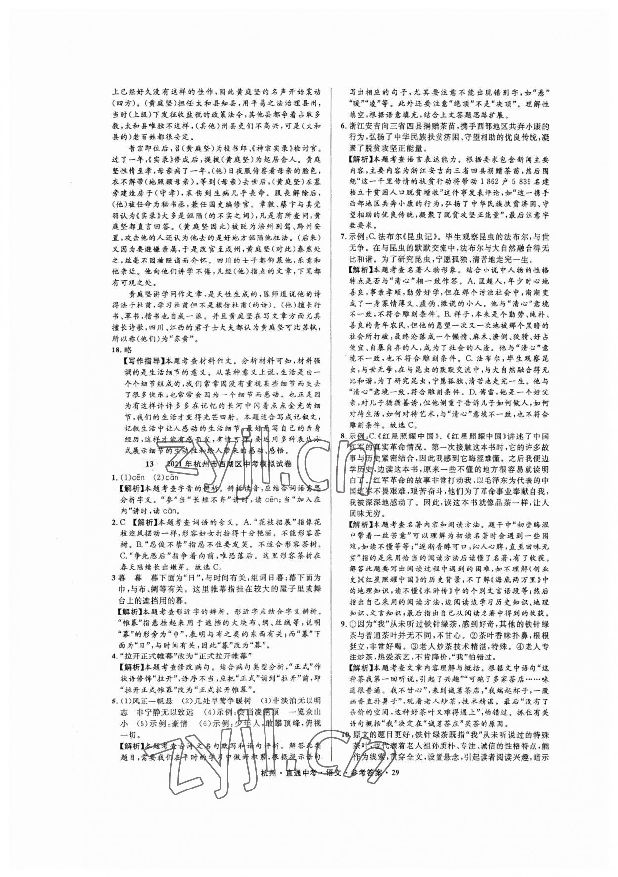 注:目前有些书本章节名称可能整理的还不是很完善,但都是按照顺序排列的,请同学们按照顺序仔细查找。练习册 2023年直通中考中考试题精编语文杭州专版 答案主要是用来给同学们做完题方便对答案用的,请勿直接抄袭。