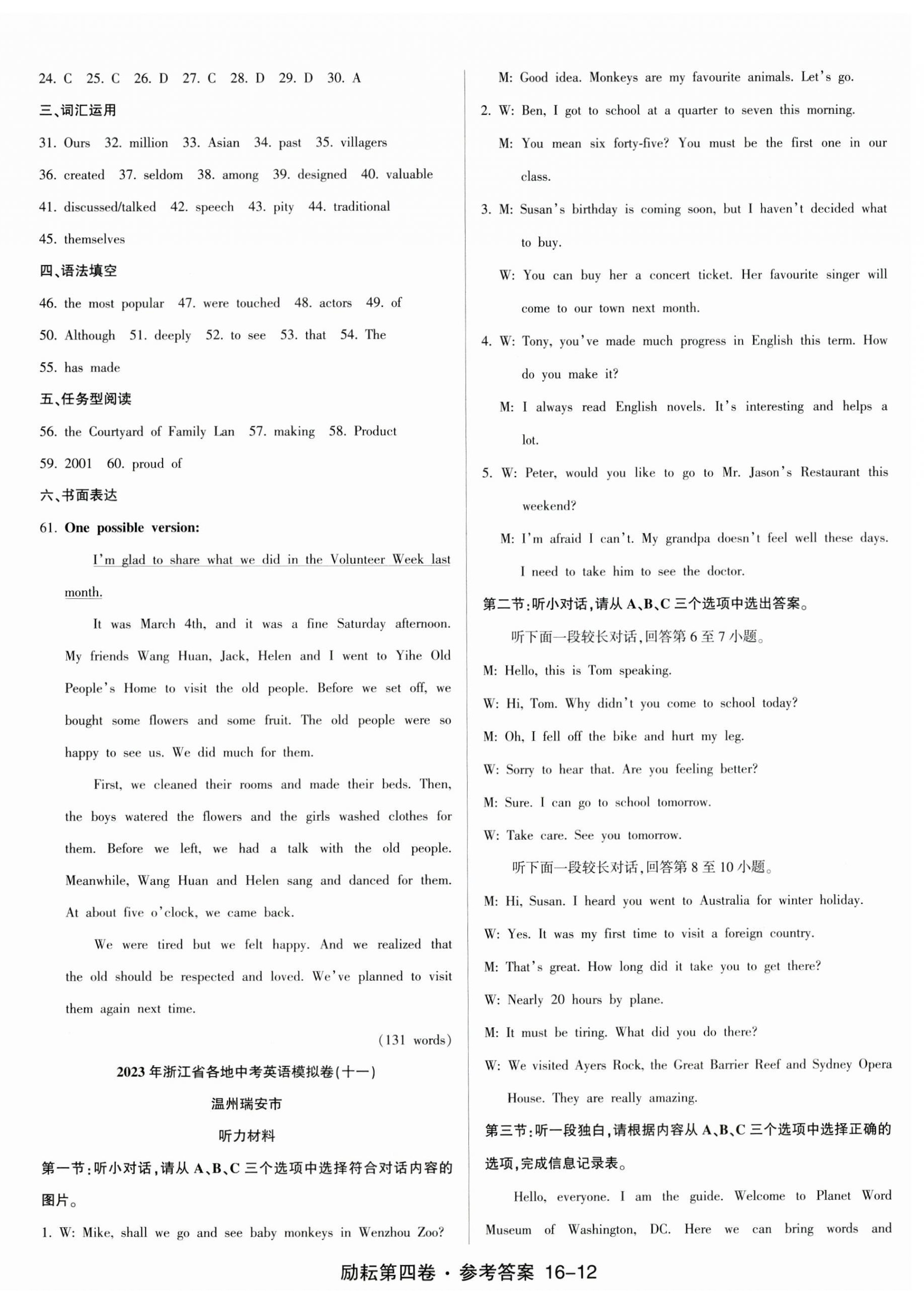 2023年励耘第4卷英语中考浙江专版