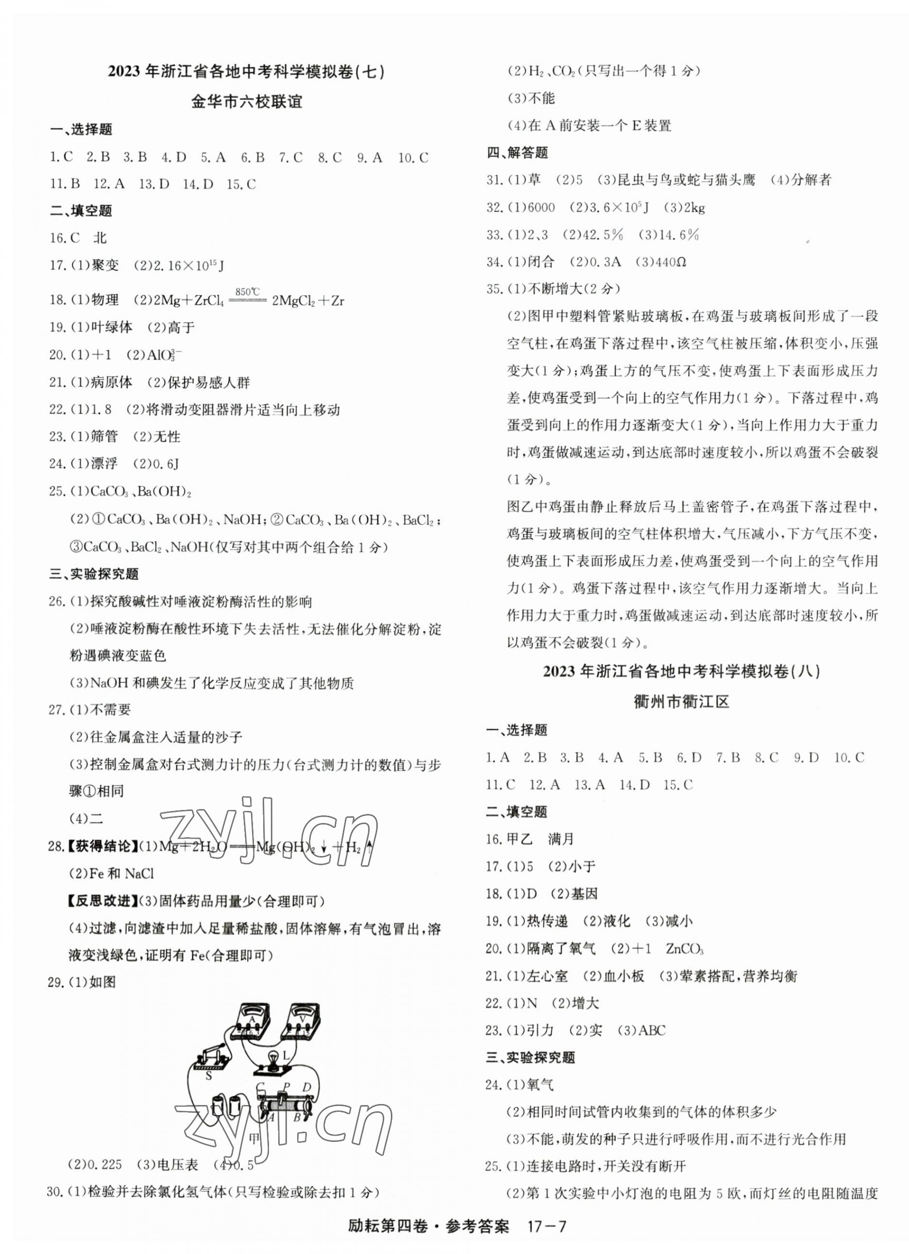 2023年励耘第4卷科学中考浙江专版