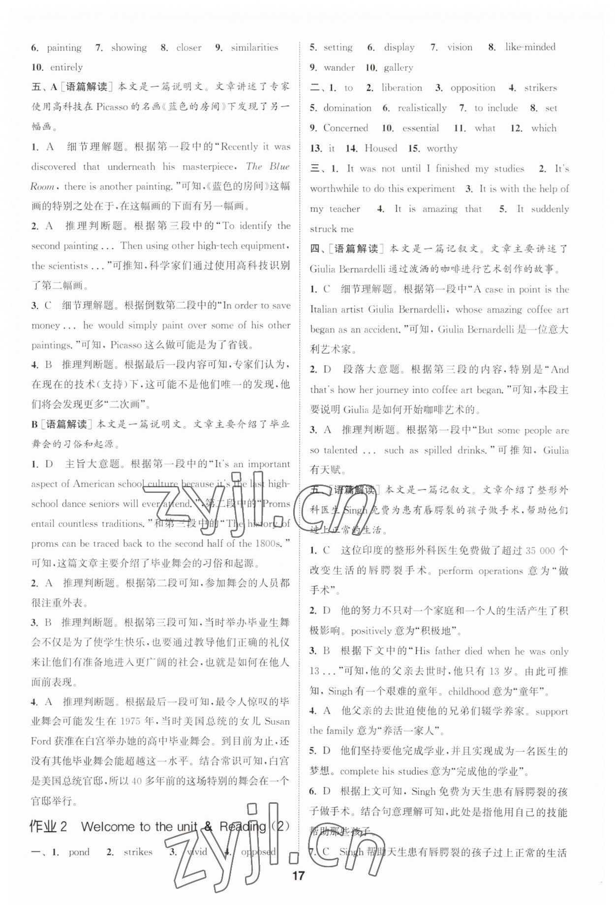 注:目前有些书本章节名称可能整理的还不是很完善,但都是按照顺序排列的,请同学们按照顺序仔细查找。练习册 2023年通城学典课时作业本高中英语选择性必修第一册译林版 答案主要是用来给同学们做完题方便对答案用的,请勿直接抄袭。