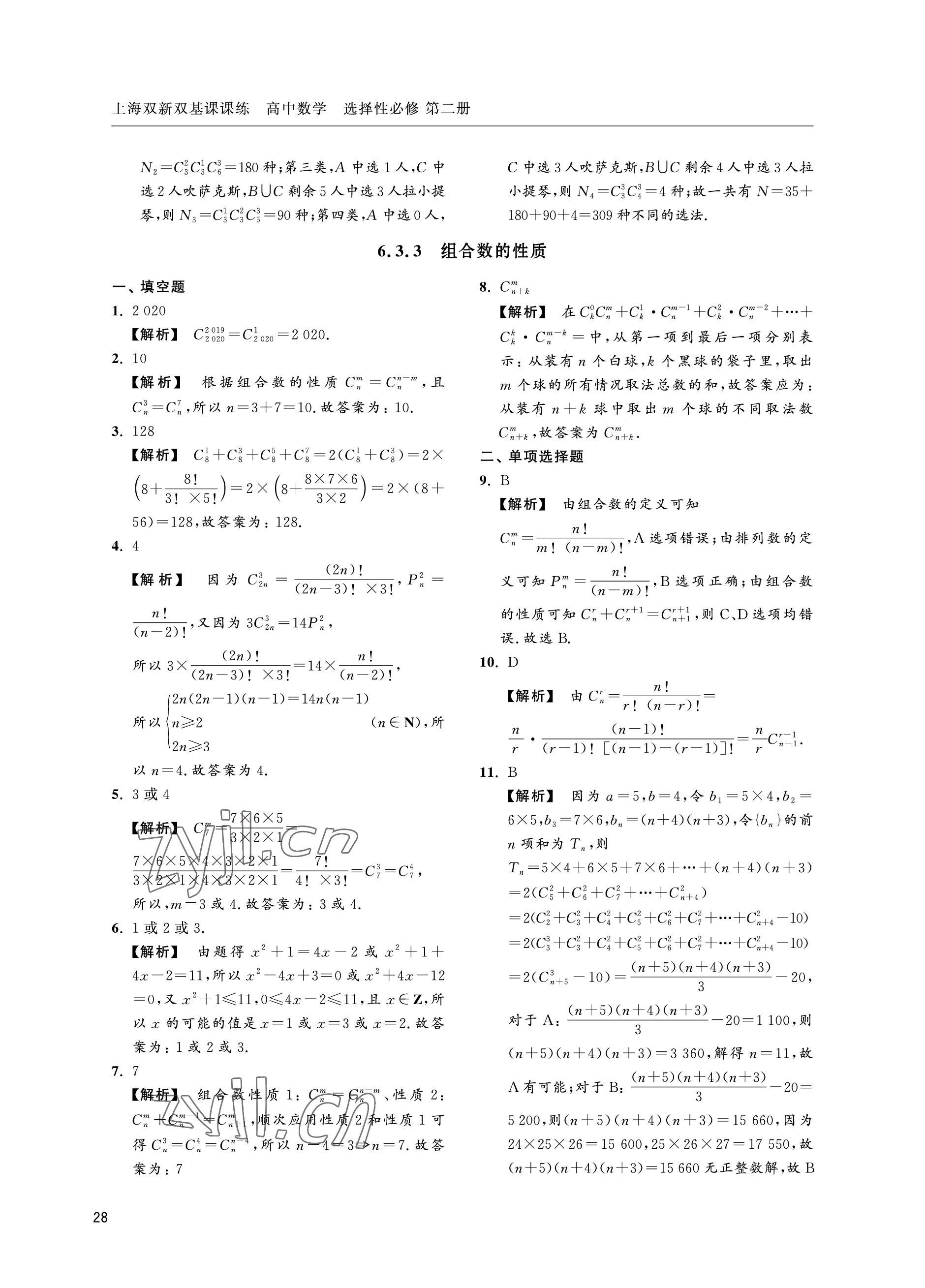 注:目前有些书本章节名称可能整理的还不是很完善,但都是按照顺序排列的,请同学们按照顺序仔细查找。练习册 2022年上海双新双基课课练高中数学选择性必修第二册沪教版 答案主要是用来给同学们做完题方便对答案用的,请勿直接抄袭。