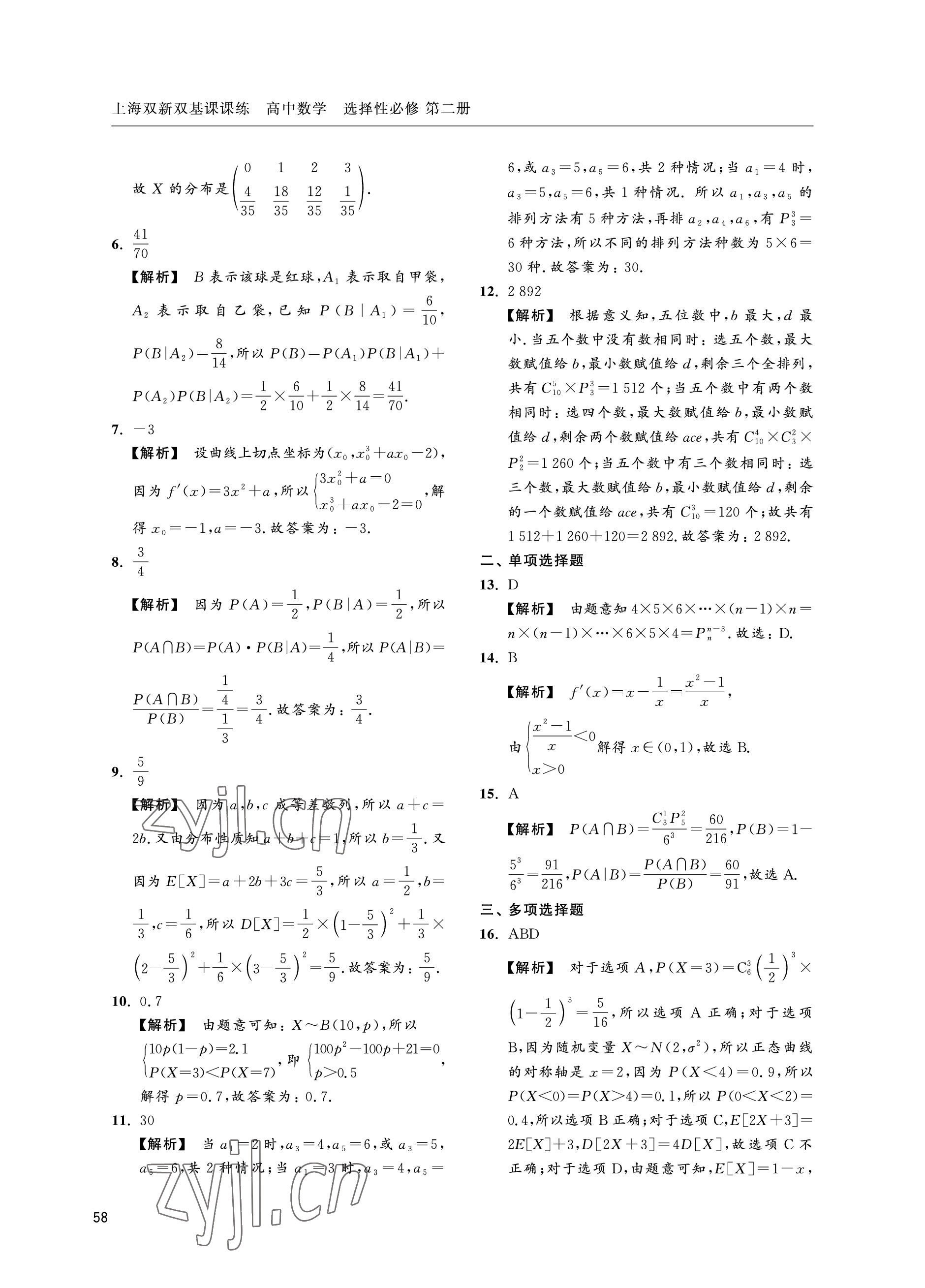 注:目前有些书本章节名称可能整理的还不是很完善,但都是按照顺序排列的,请同学们按照顺序仔细查找。练习册 2022年上海双新双基课课练高中数学选择性必修第二册沪教版 答案主要是用来给同学们做完题方便对答案用的,请勿直接抄袭。